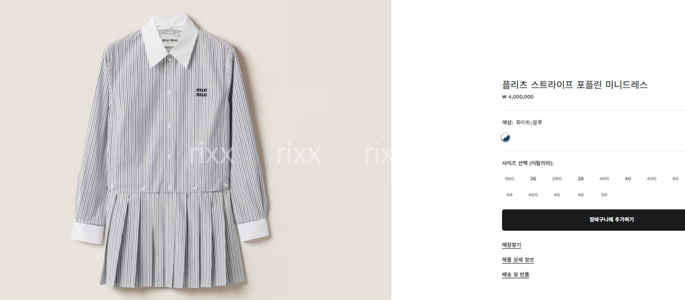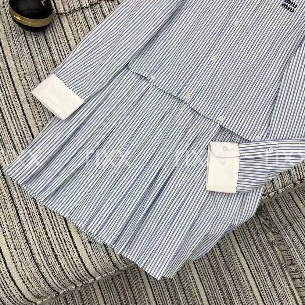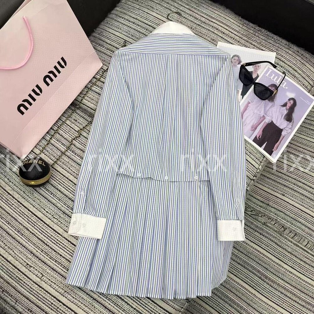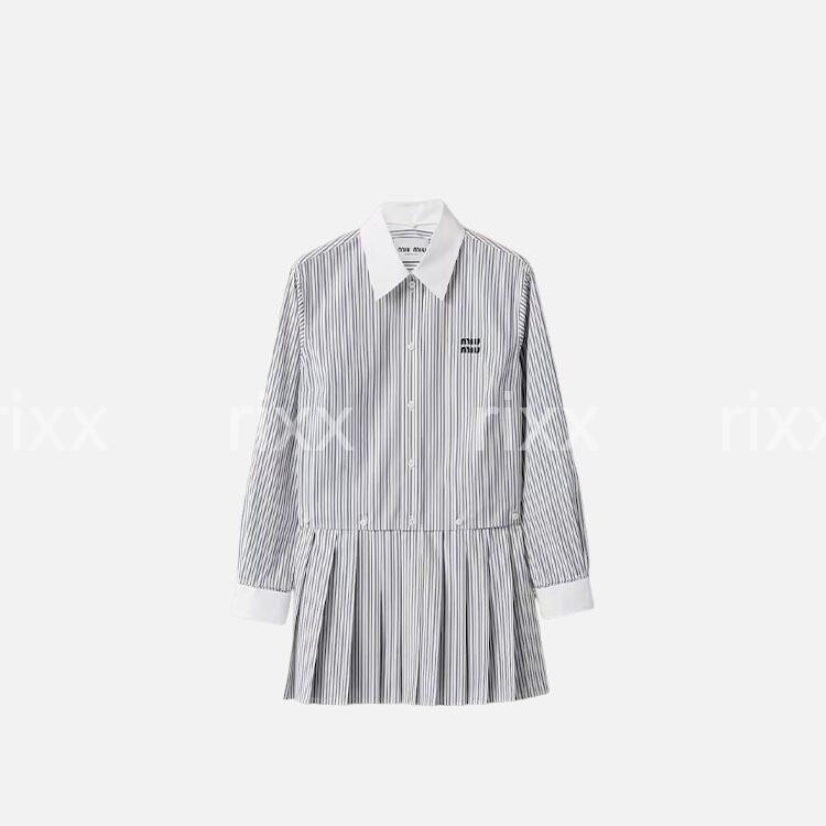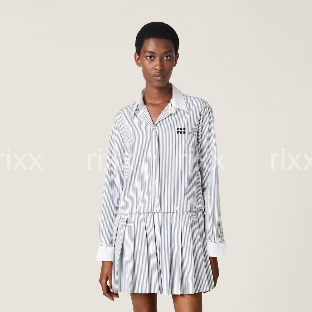 미우미우 플리츠 스트라이프 포플린 미니드레스 【매장-400만원대】