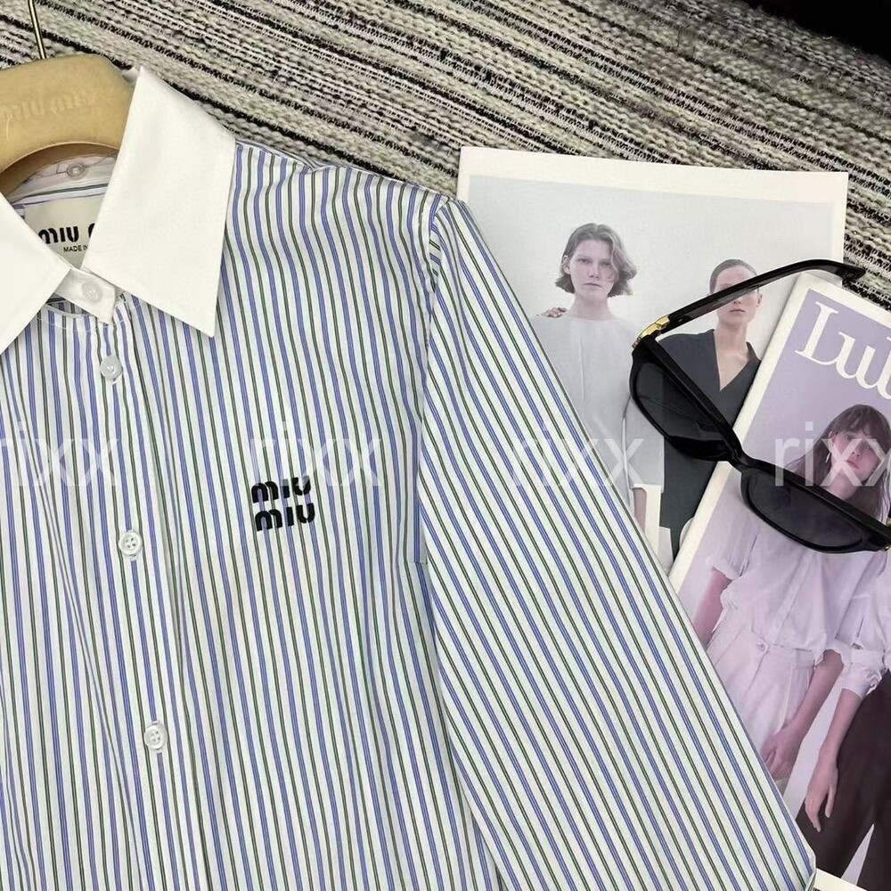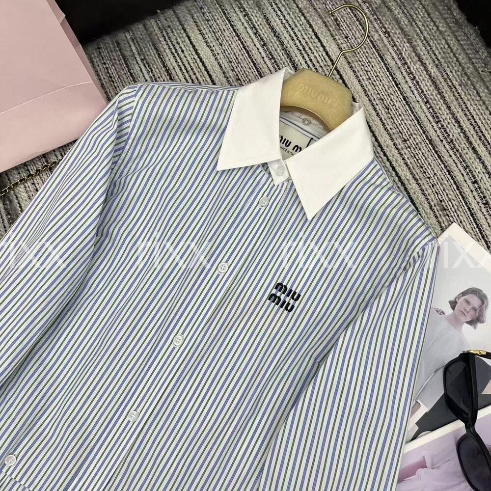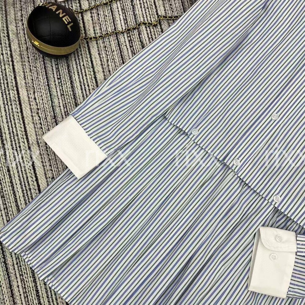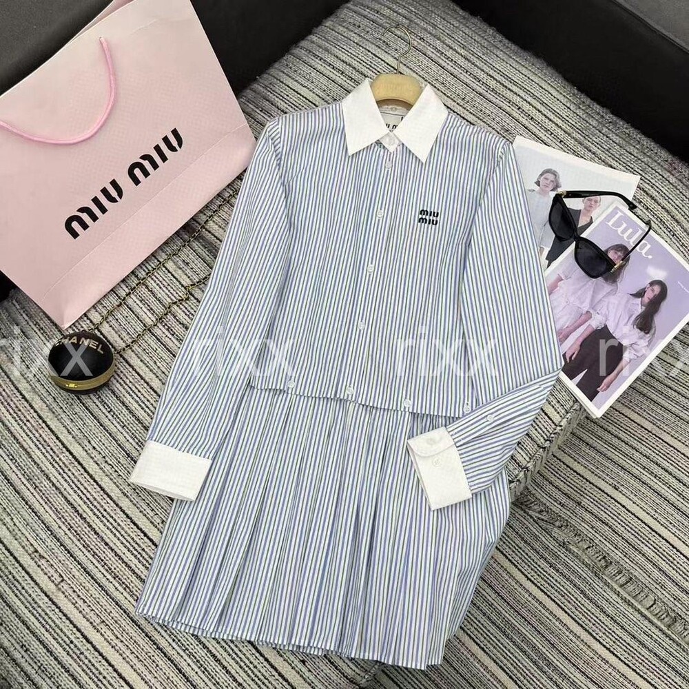 미우미우 플리츠 스트라이프 포플린 미니드레스 【매장-400만원대】
