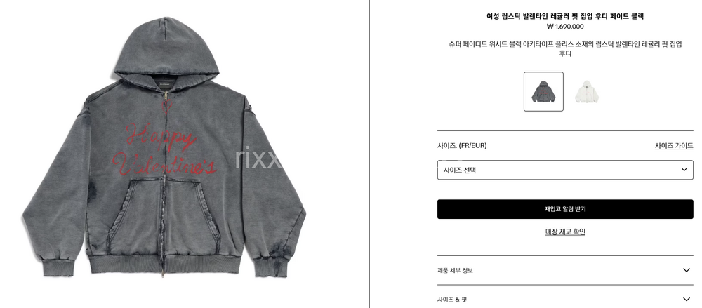 발렌시아가 여성 립스틱 발렌타인 집업 후디 【매장-170만원대】