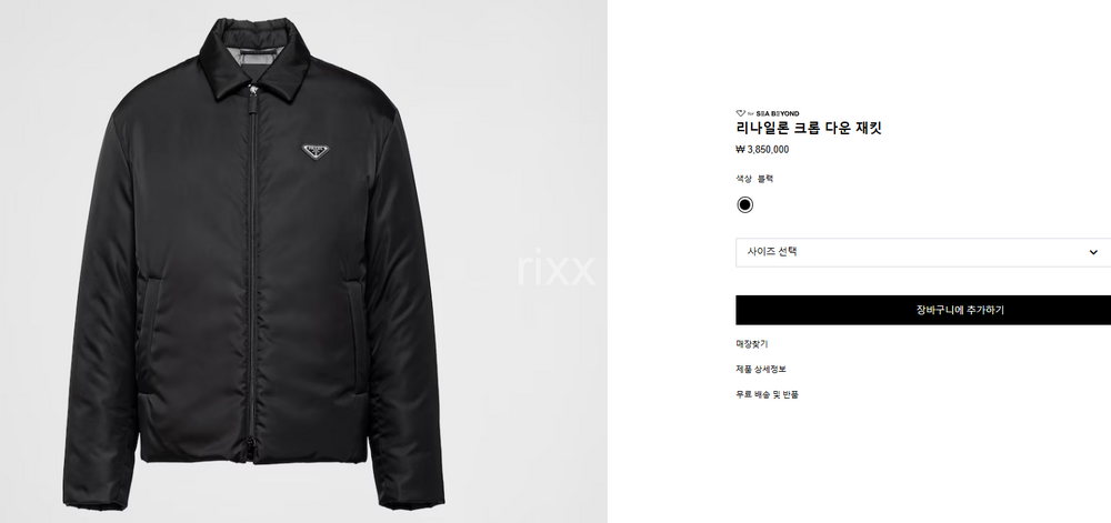 프라다 리나일론 크롭 다운 재킷 【매장-400만원대】