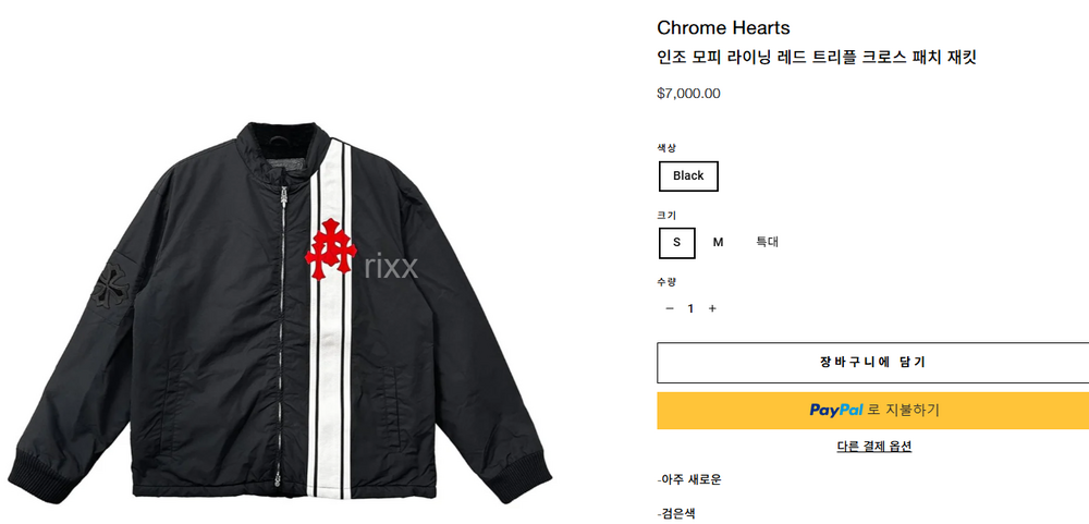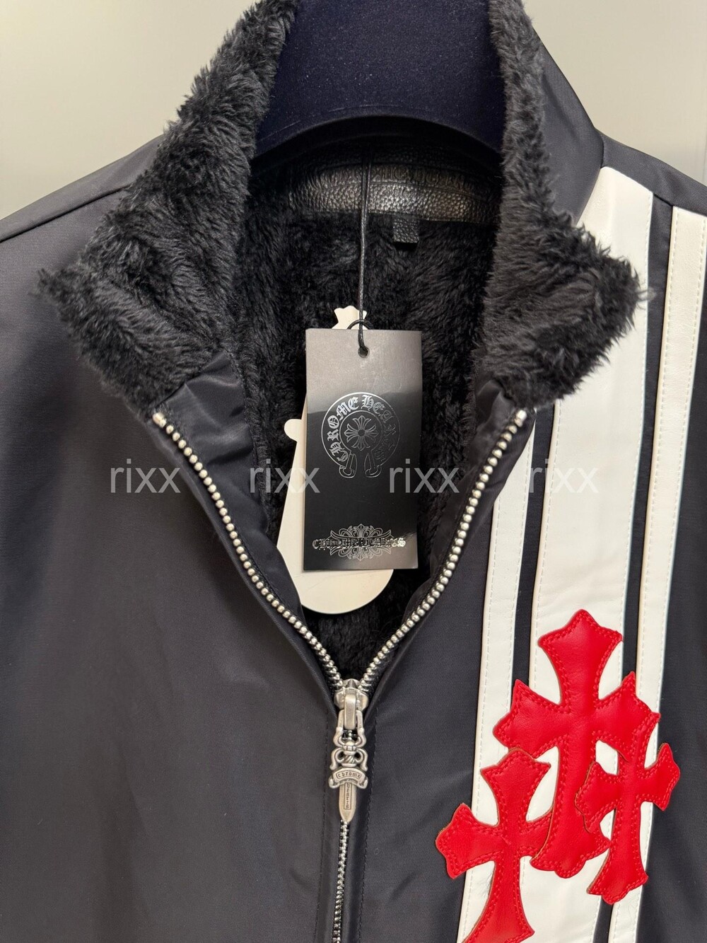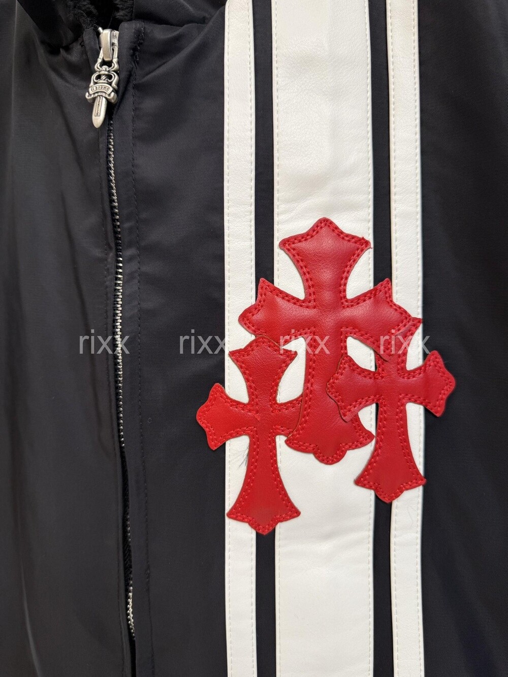 크롬하츠 인조 모피 라이닝 레드 트리플 크로스 패치 재킷 【매장-1100만원대】