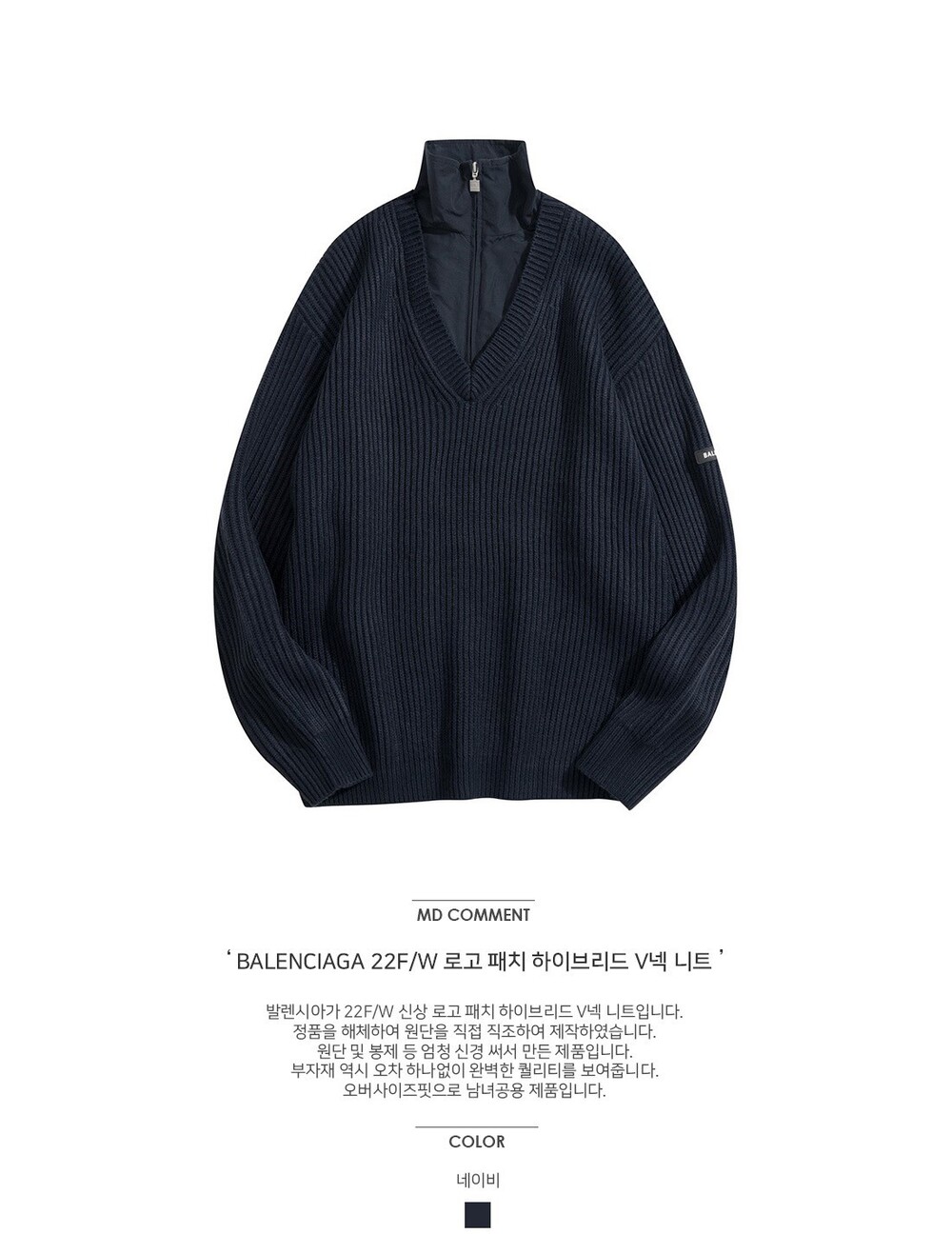 발렌시*가 로고패치 하이브리드 V텍 니트