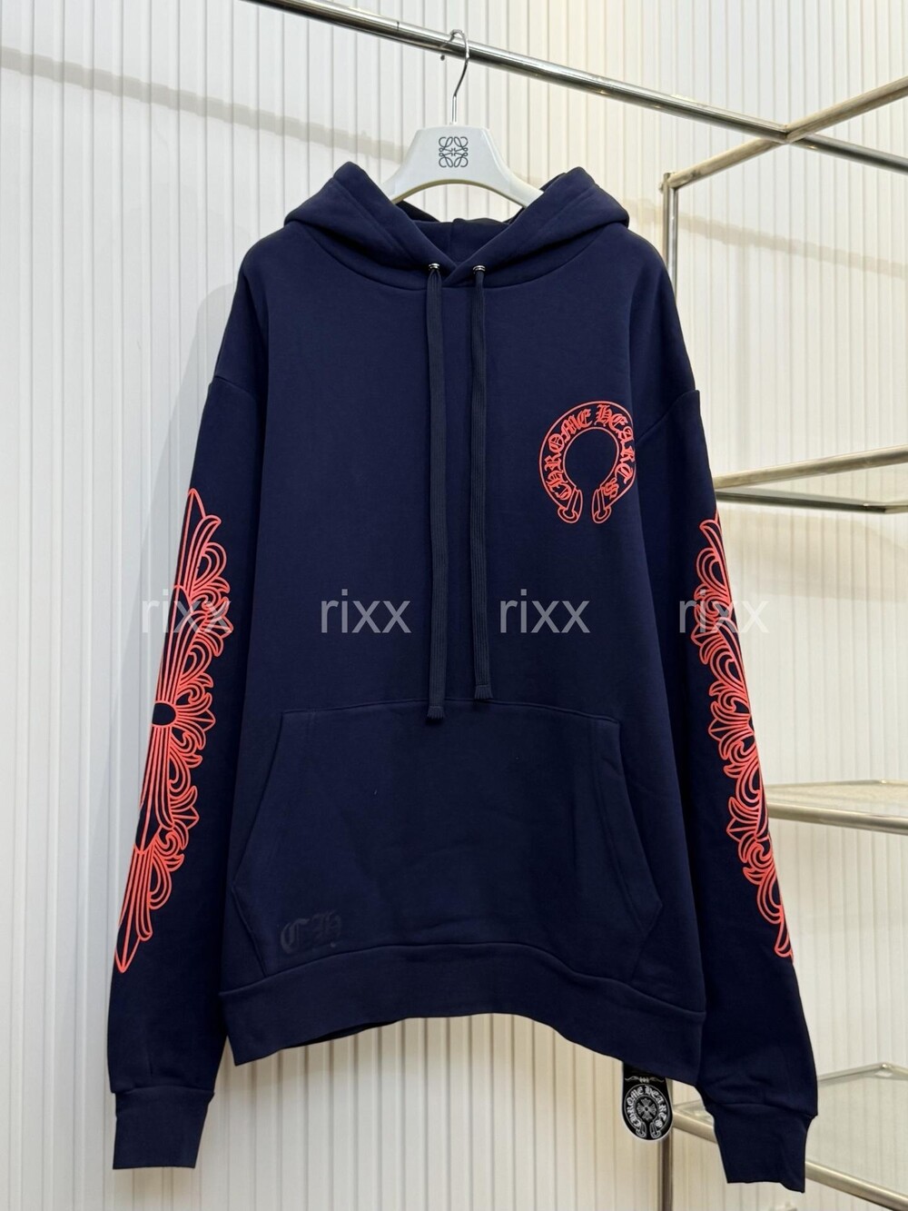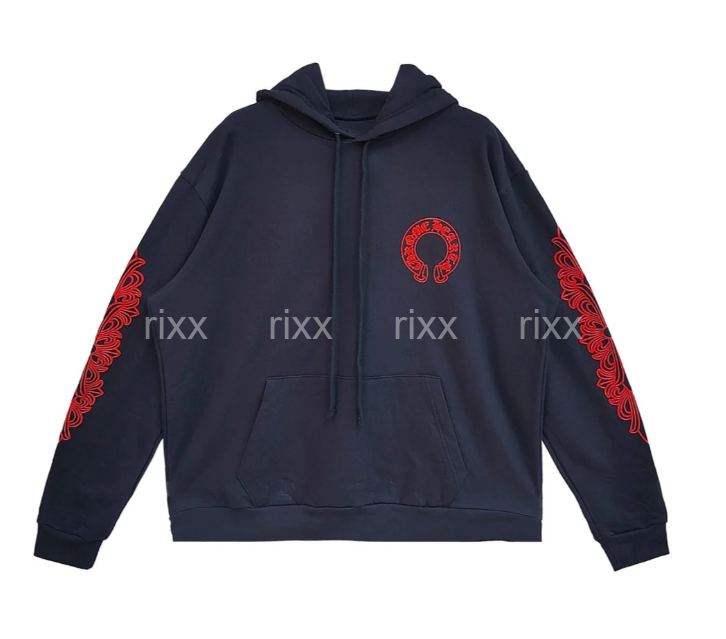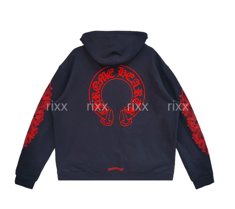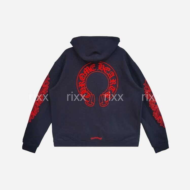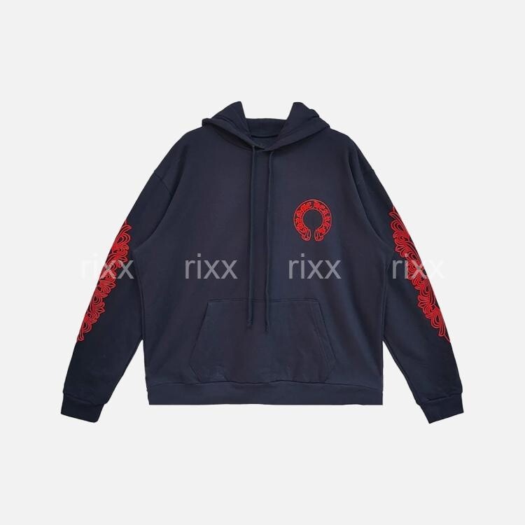 크롬하츠 네이비&레드 호스슈 플로럴 슬리브 풀오버 후드 【매장-270만원대】