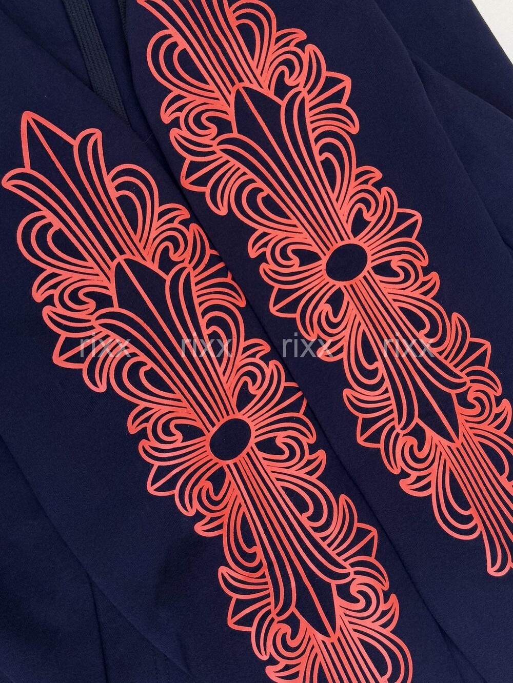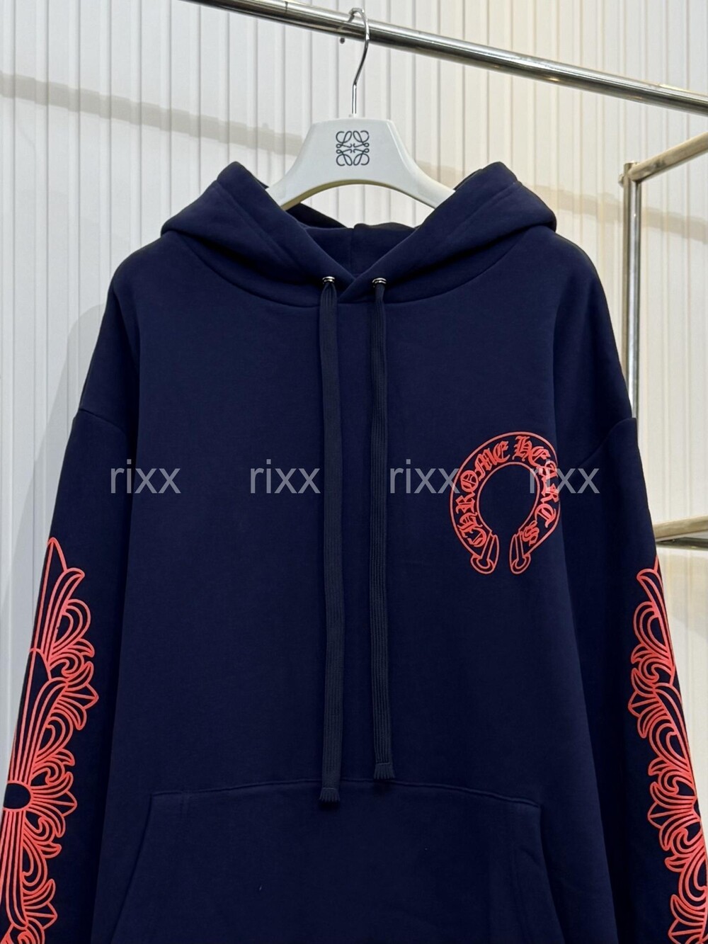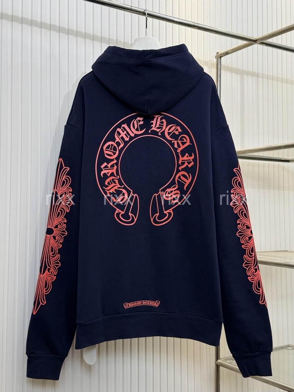 크롬하츠 네이비&레드 호스슈 플로럴 슬리브 풀오버 후드 【매장-270만원대】