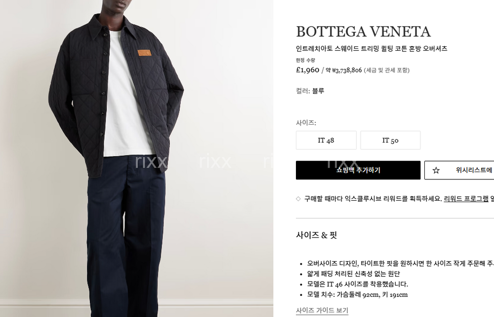 발렌시아가 인트레치아토 스웨이드 트리밍 퀼팅 코튼 혼방 오버셔츠 【매장-380만원대】