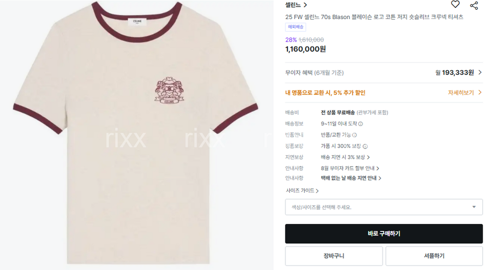 셀린느 70s Blason 코튼 저지 숏슬리브 크루넥 티셔츠 【매장-120만원대】