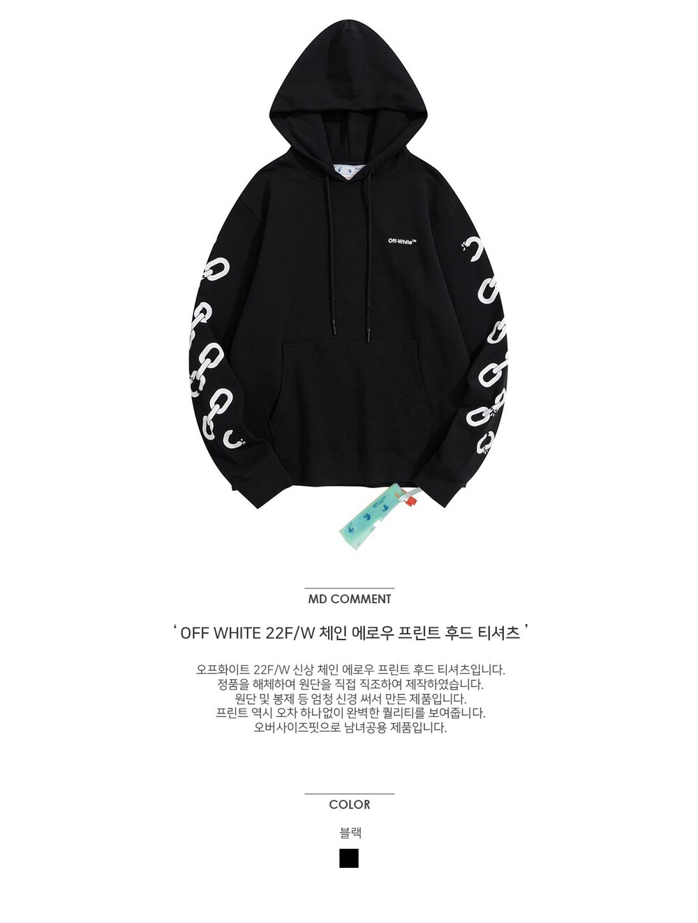 OFF 체인 애로우 프린트 후드 티셔츠