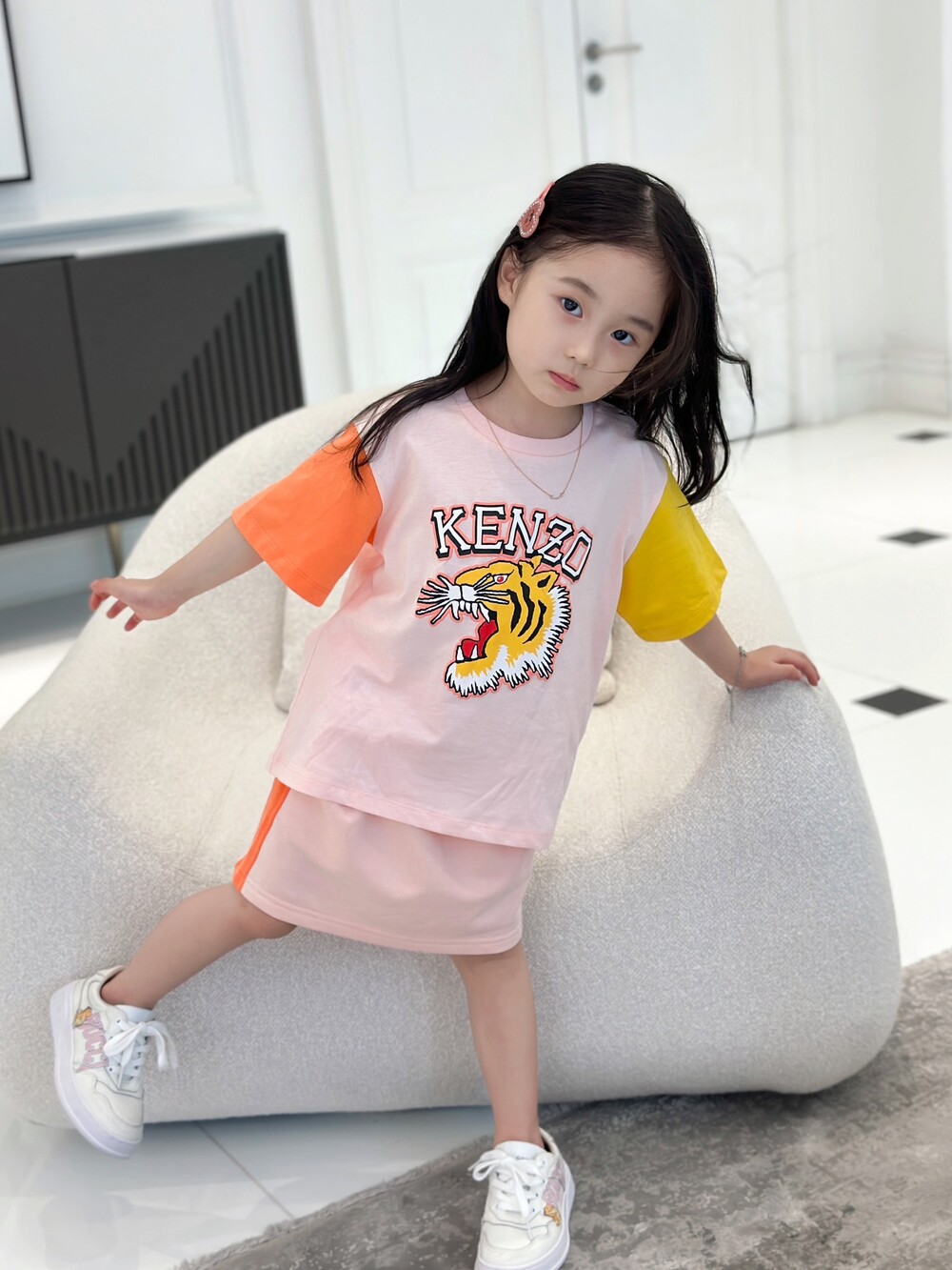 AC 아동복 겐조 핑크 티셔츠 & 부클 스커트 세트