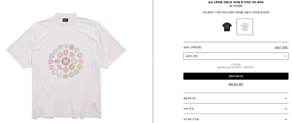 발렌시아가 스파이럴 크레스트 미디엄 핏 티셔츠 【매장-130만원대】