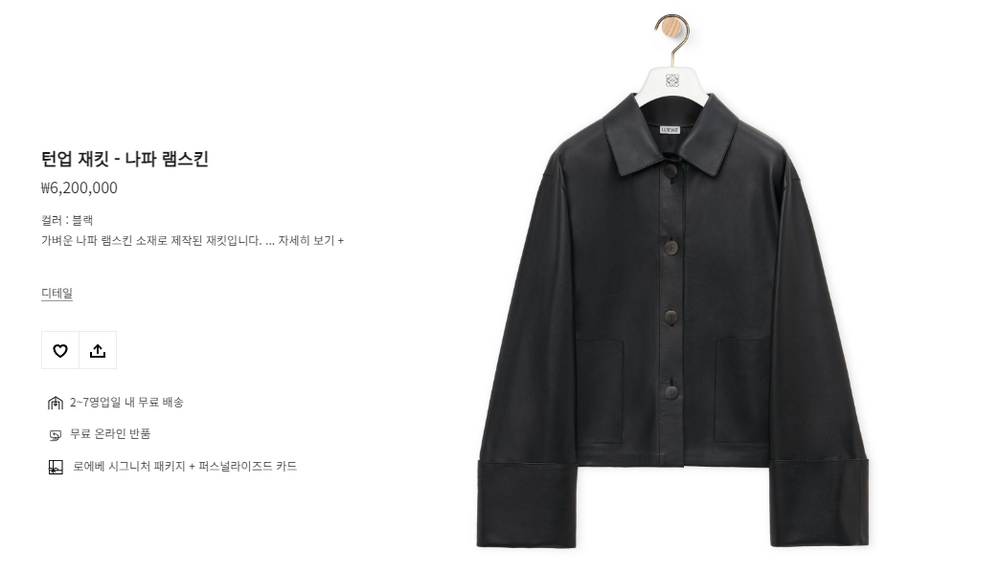 로에베 턴업 재킷 - 나파 램스킨 【매장-620만원대】