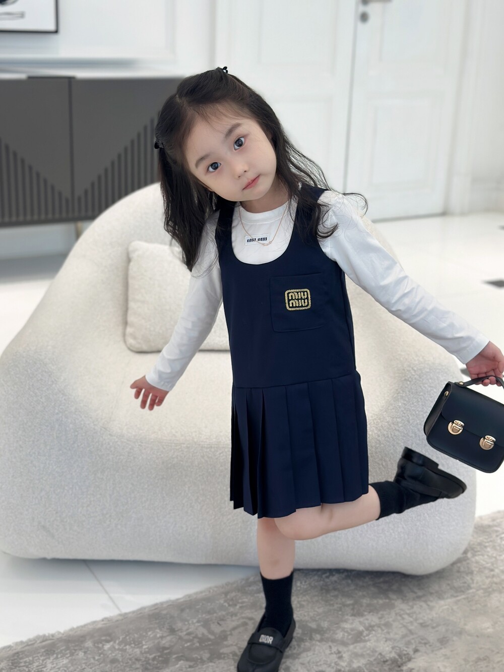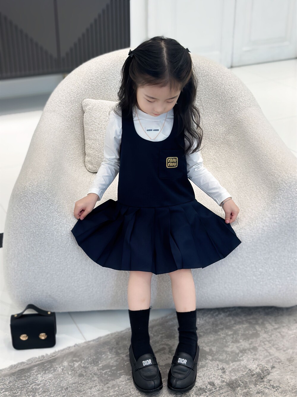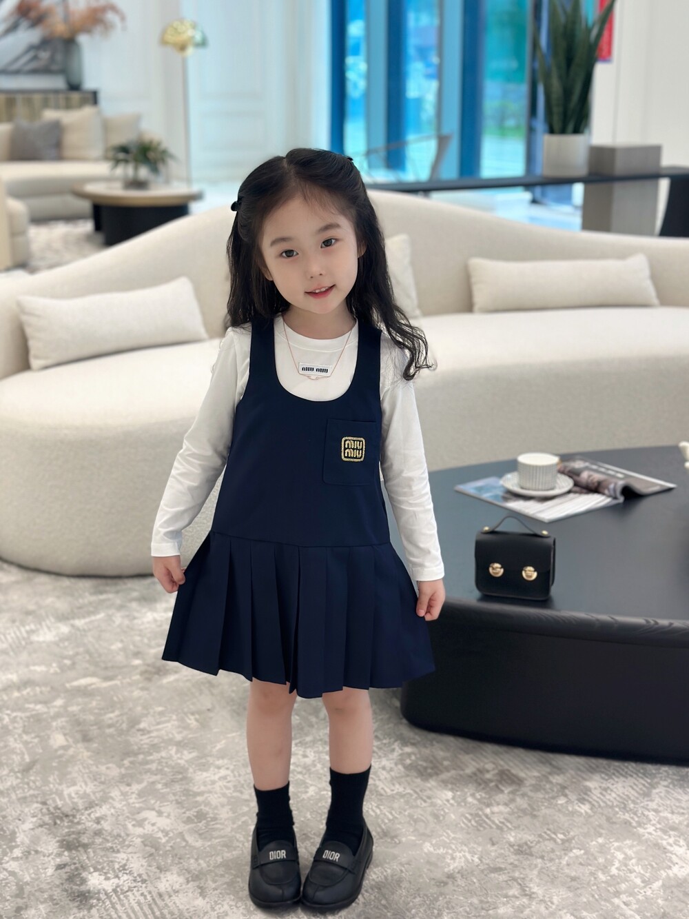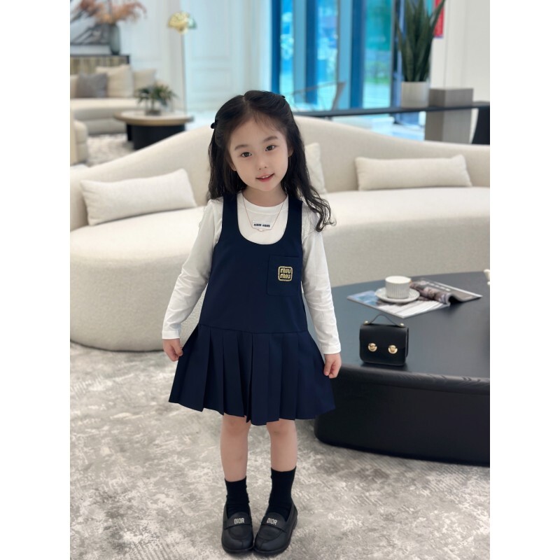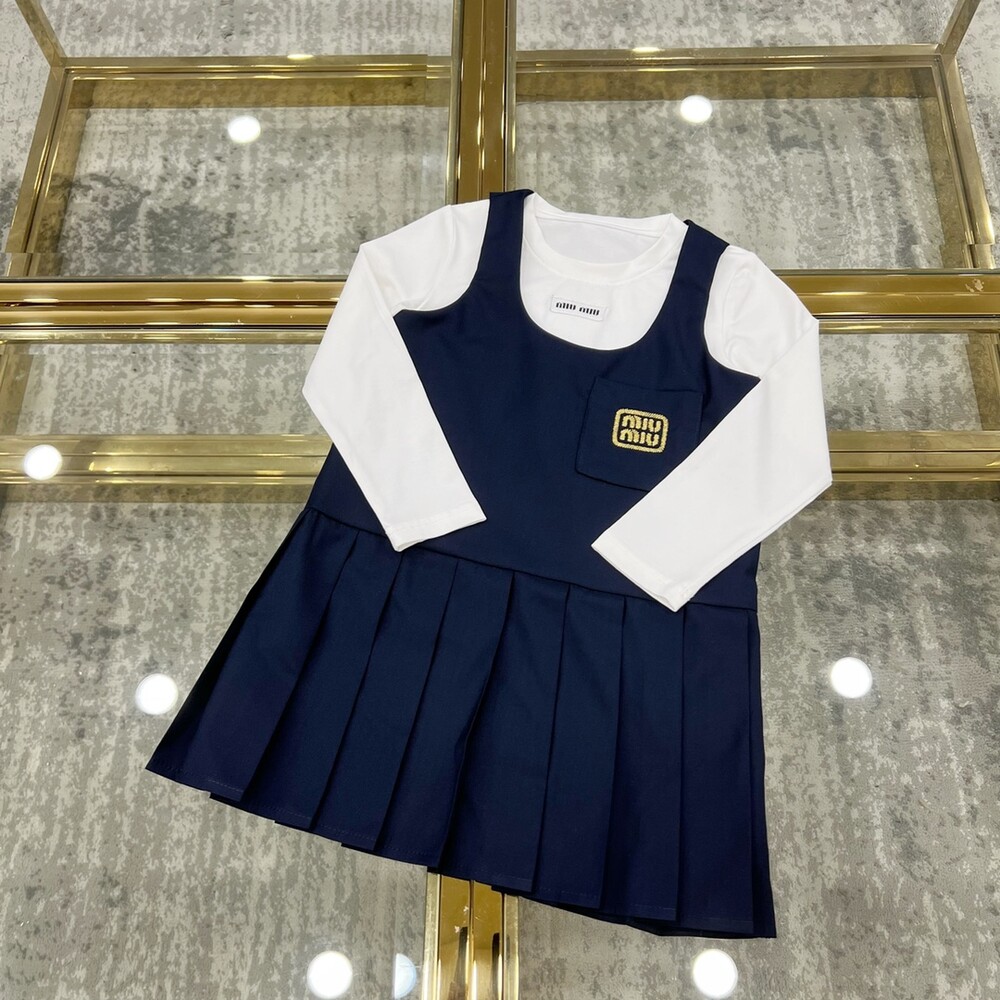 AC 아동복 미우미우 스쿨 이너티셔츠 & 플리츠 패치 나시 스커트 세트 (소량입고)