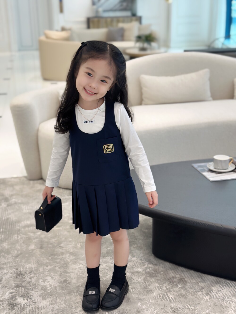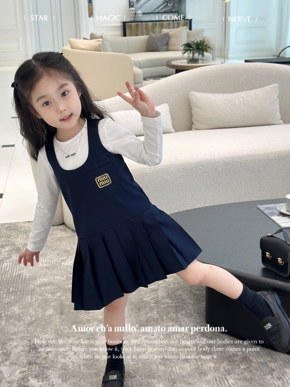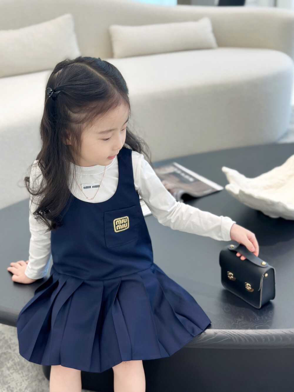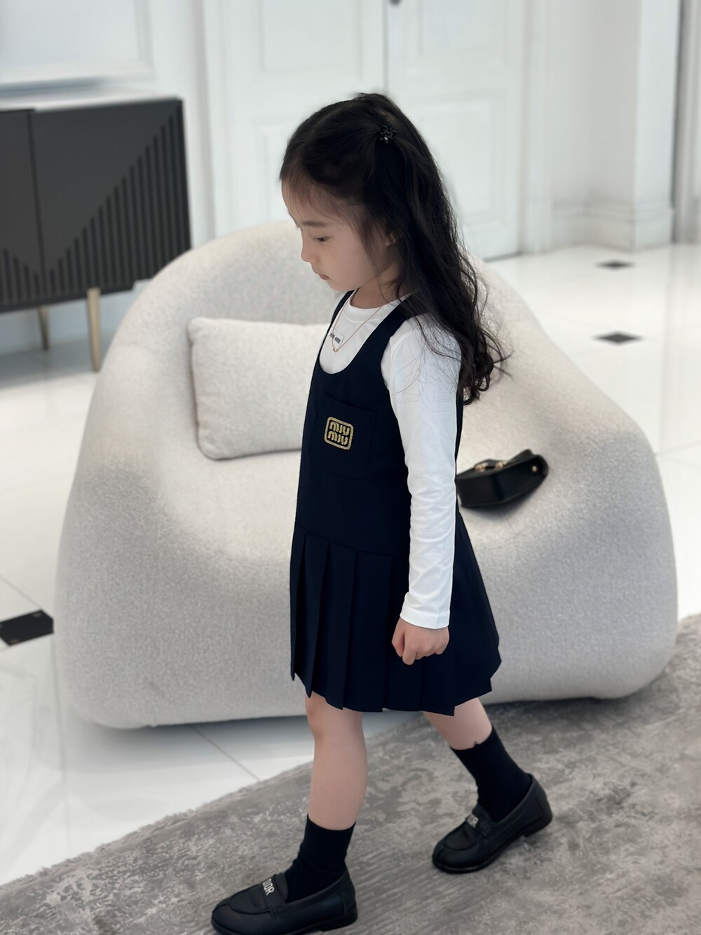 AC 아동복 미우미우 스쿨 이너티셔츠 & 플리츠 패치 나시 스커트 세트 (소량입고)