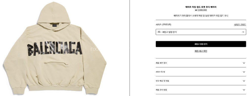 발렌시아가 테이프 타입 립드 포켓 후디 【매장-200만원대】