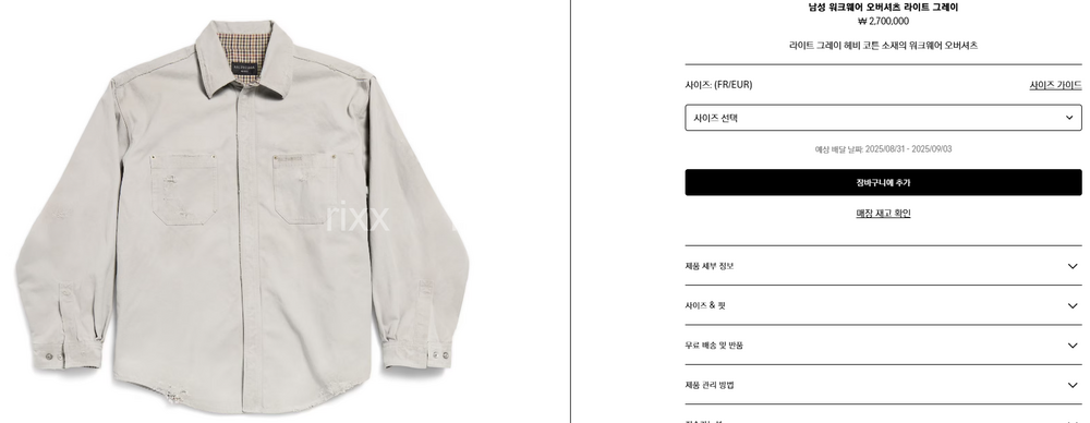 발렌시아가 워크웨어 오버셔츠 【매장-270만원대】