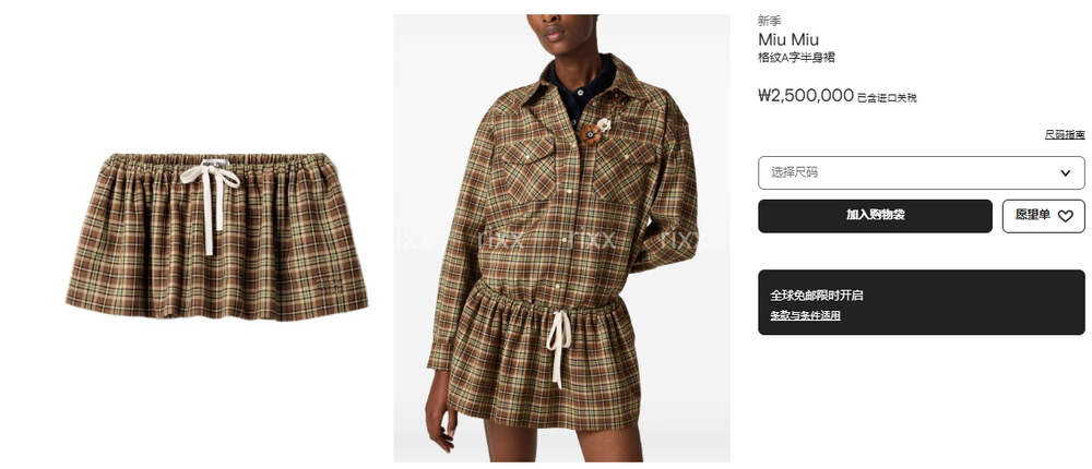 미우미우 플레드 스냅 버튼 셔츠&스커트 【매장-570만원대】