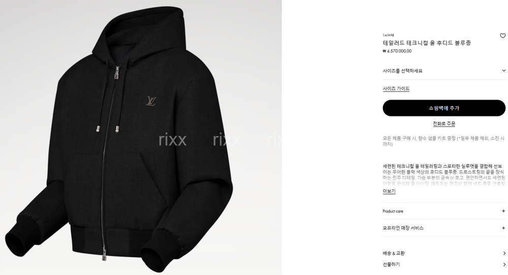 루이비통 테일러드 테크니컬 울 후디드 블루종 【매장-470만원대】