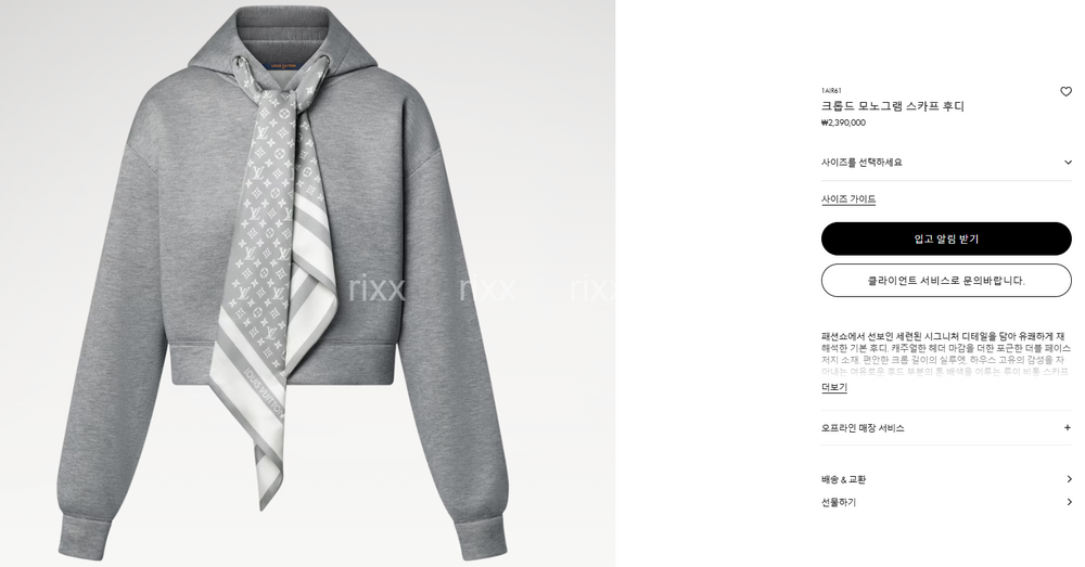 루이비통 크롭드 모노그램 스카프 후디 【매장-250만원대】