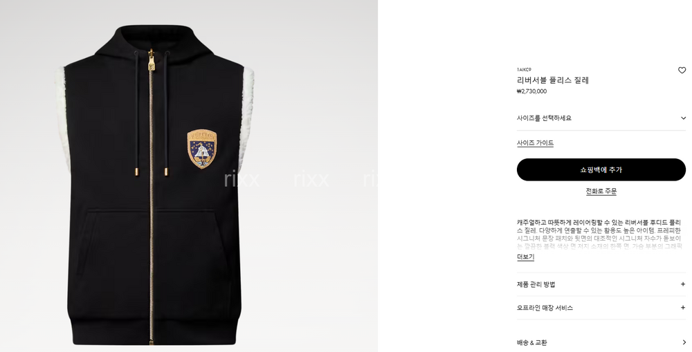 루이비통 리버서블 플리스 질레 【매장-280만원대】
