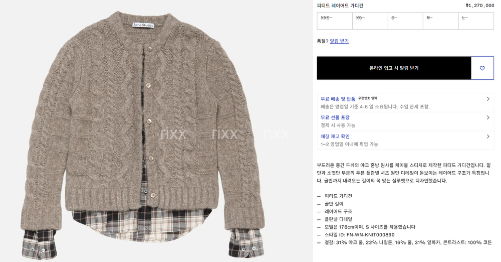 아크네스튜디오 피티드 레이어드 가디건 【매장-140만원대】