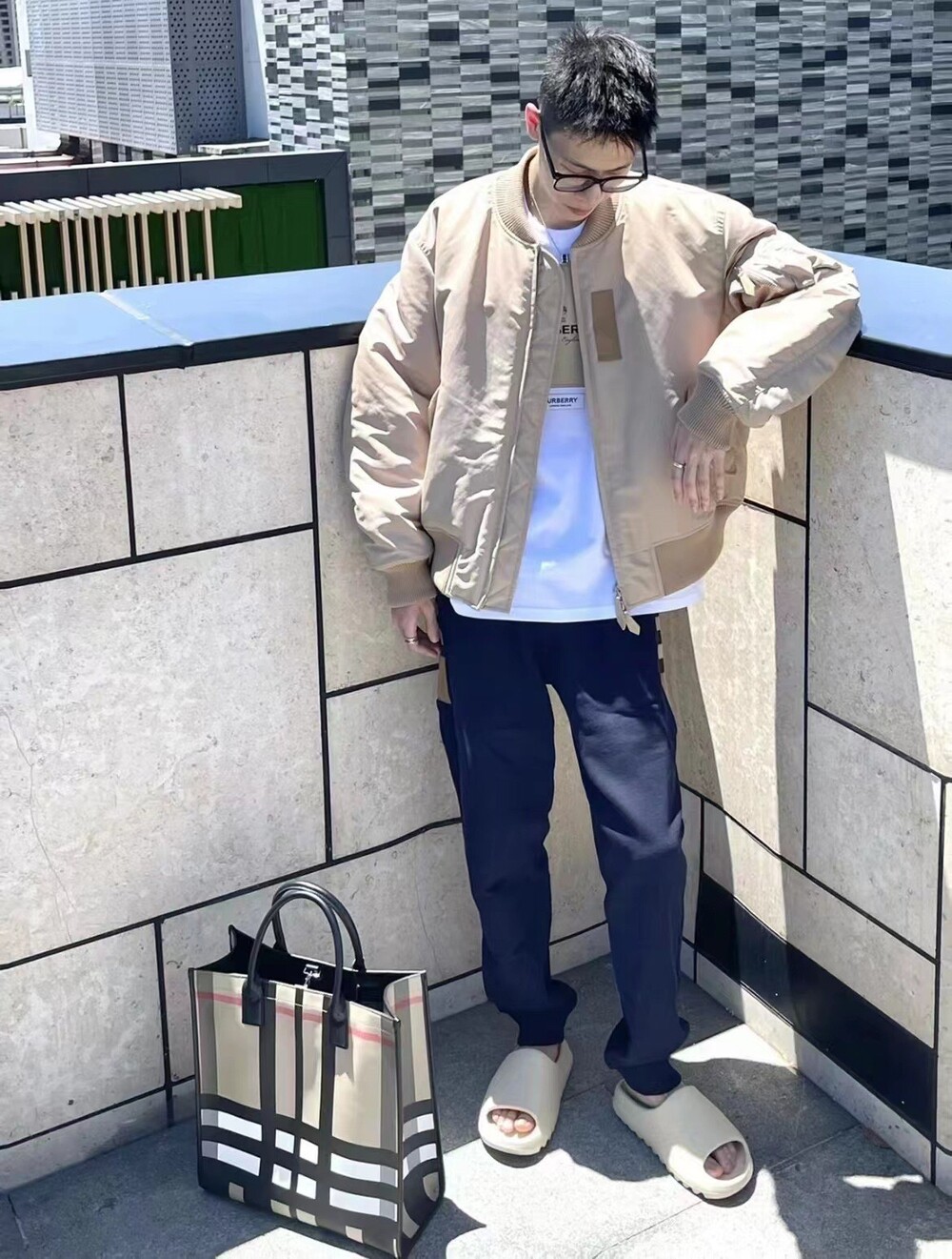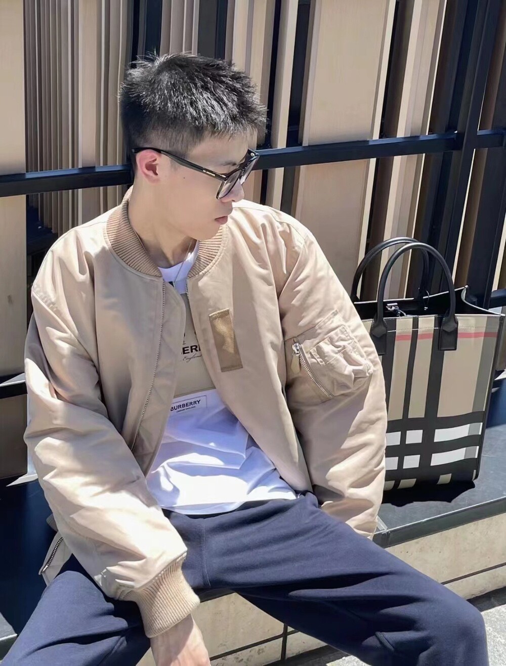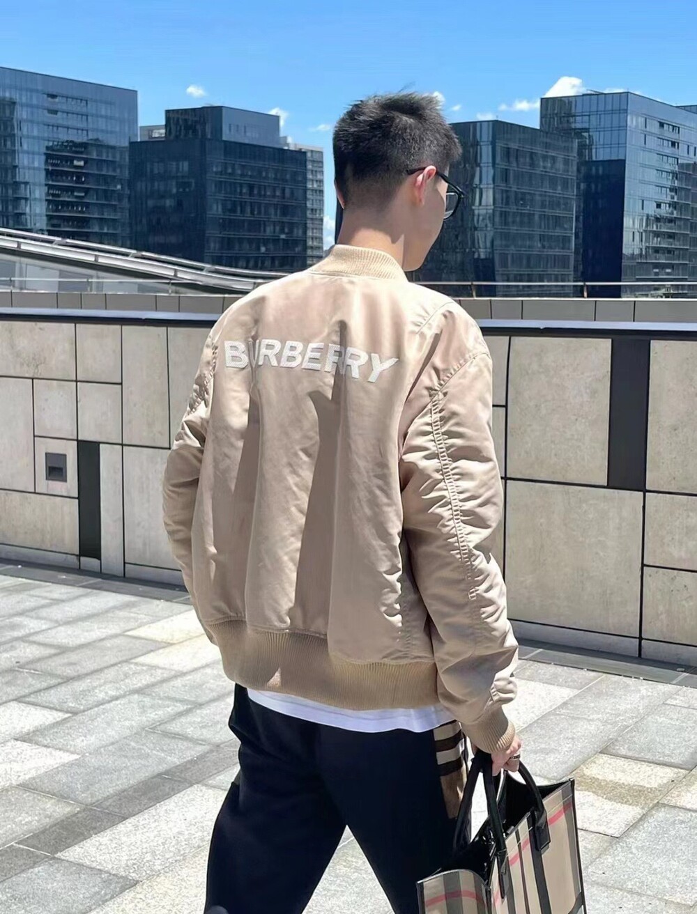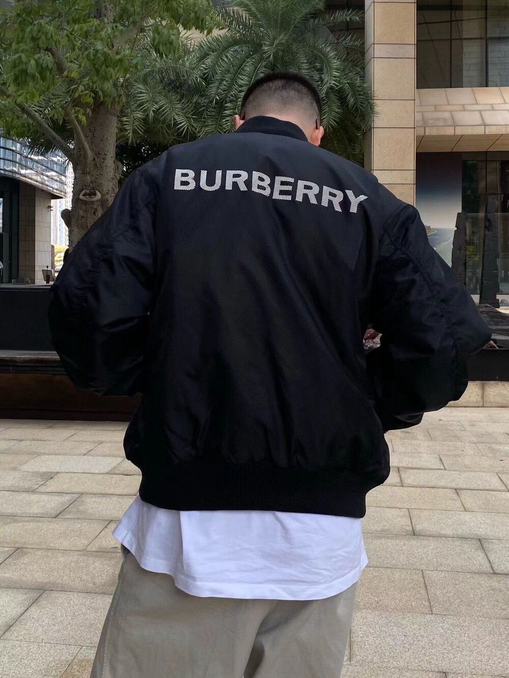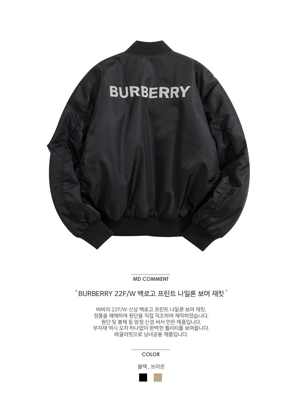 버버리 백로고 프린트 나일론 봄버 자