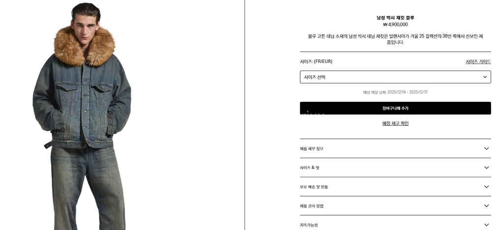 발렌시아가 박시 재킷 블루 【매장-500만원대】