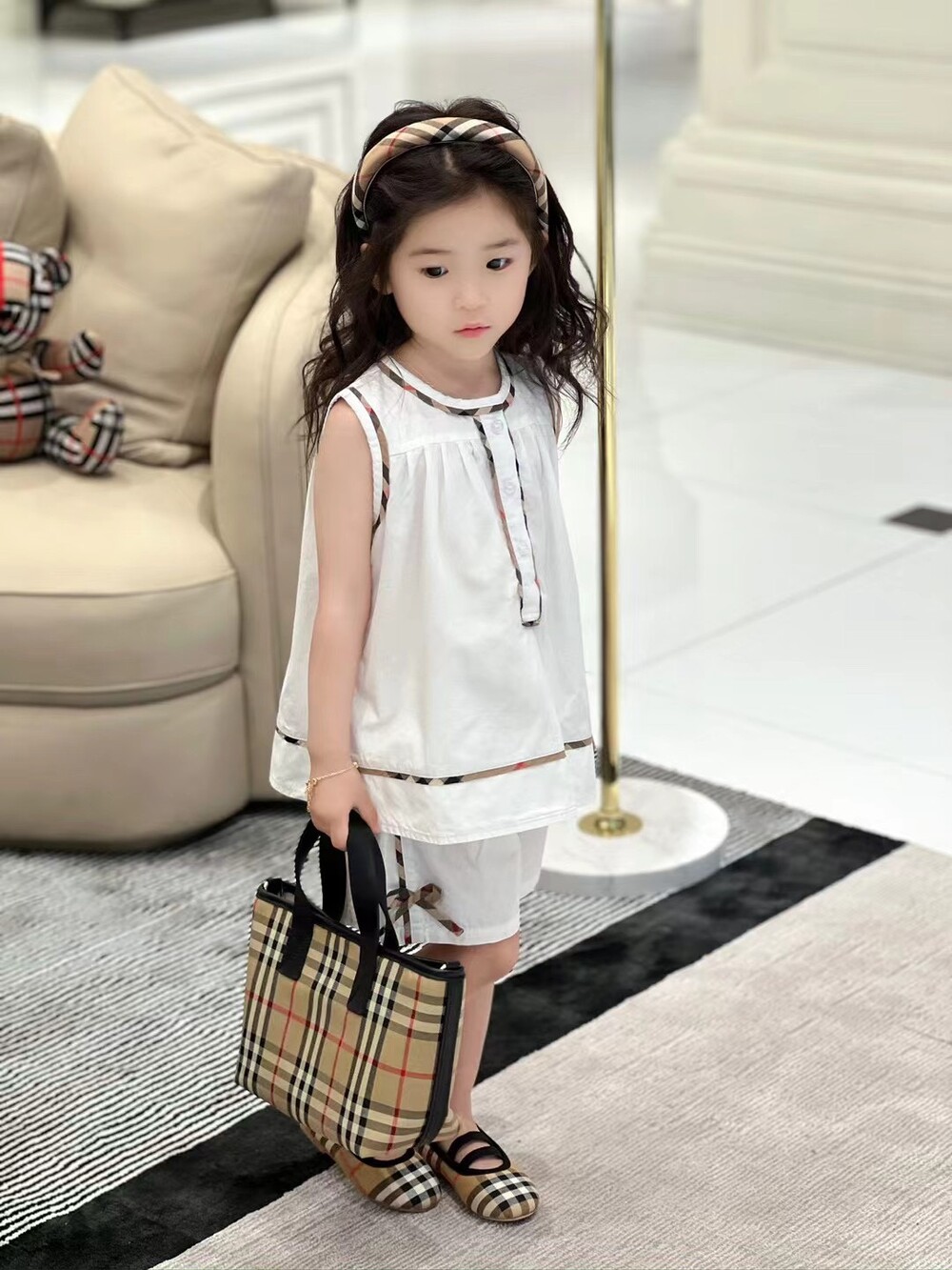 AC 아동복 버버리 패치 체크 투피스 세트