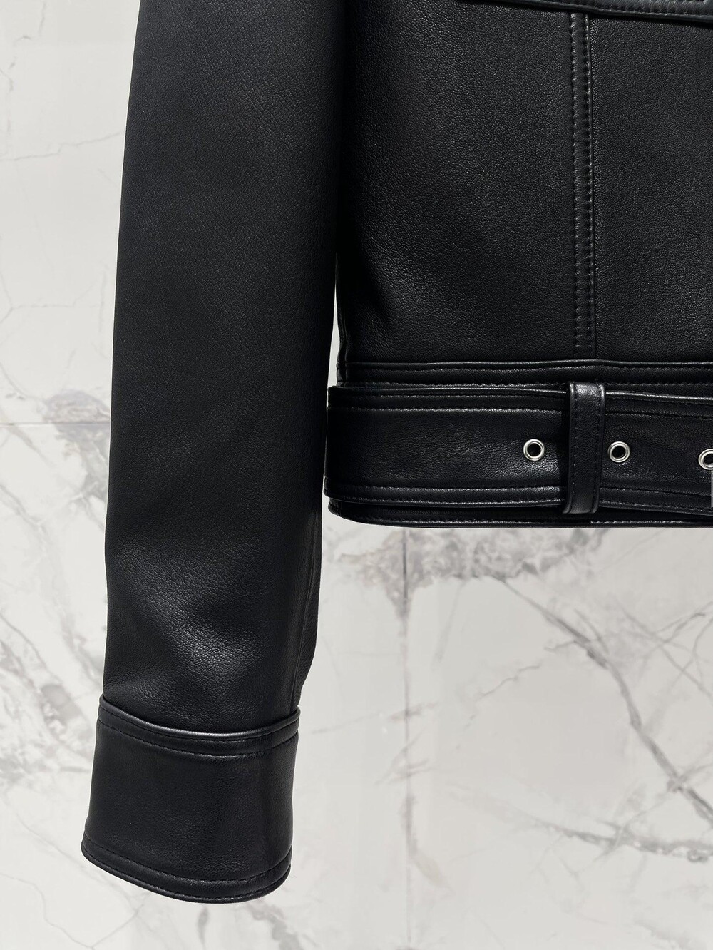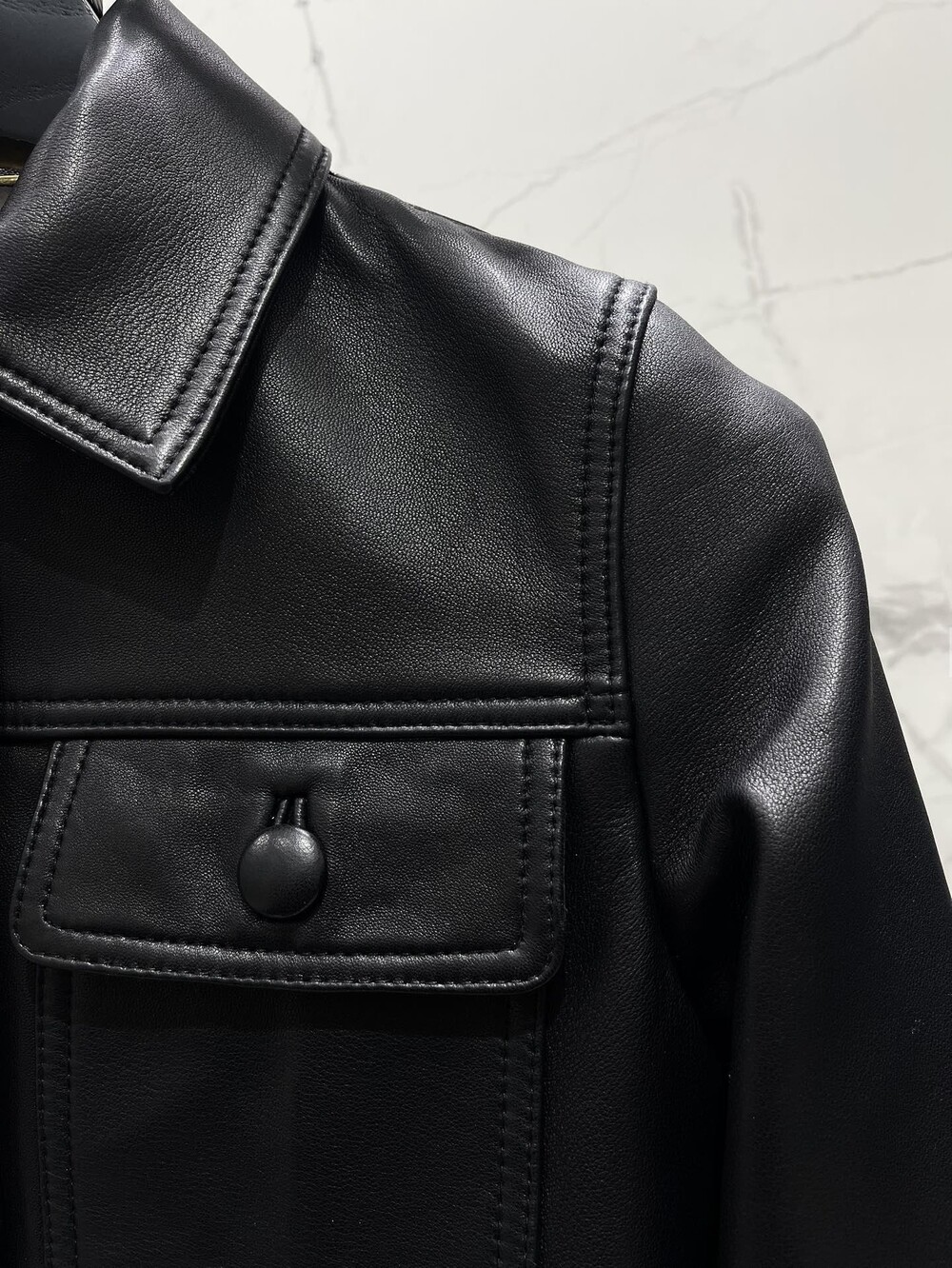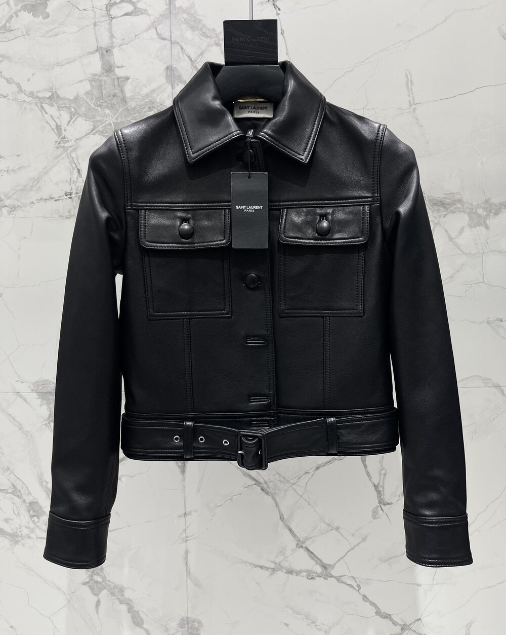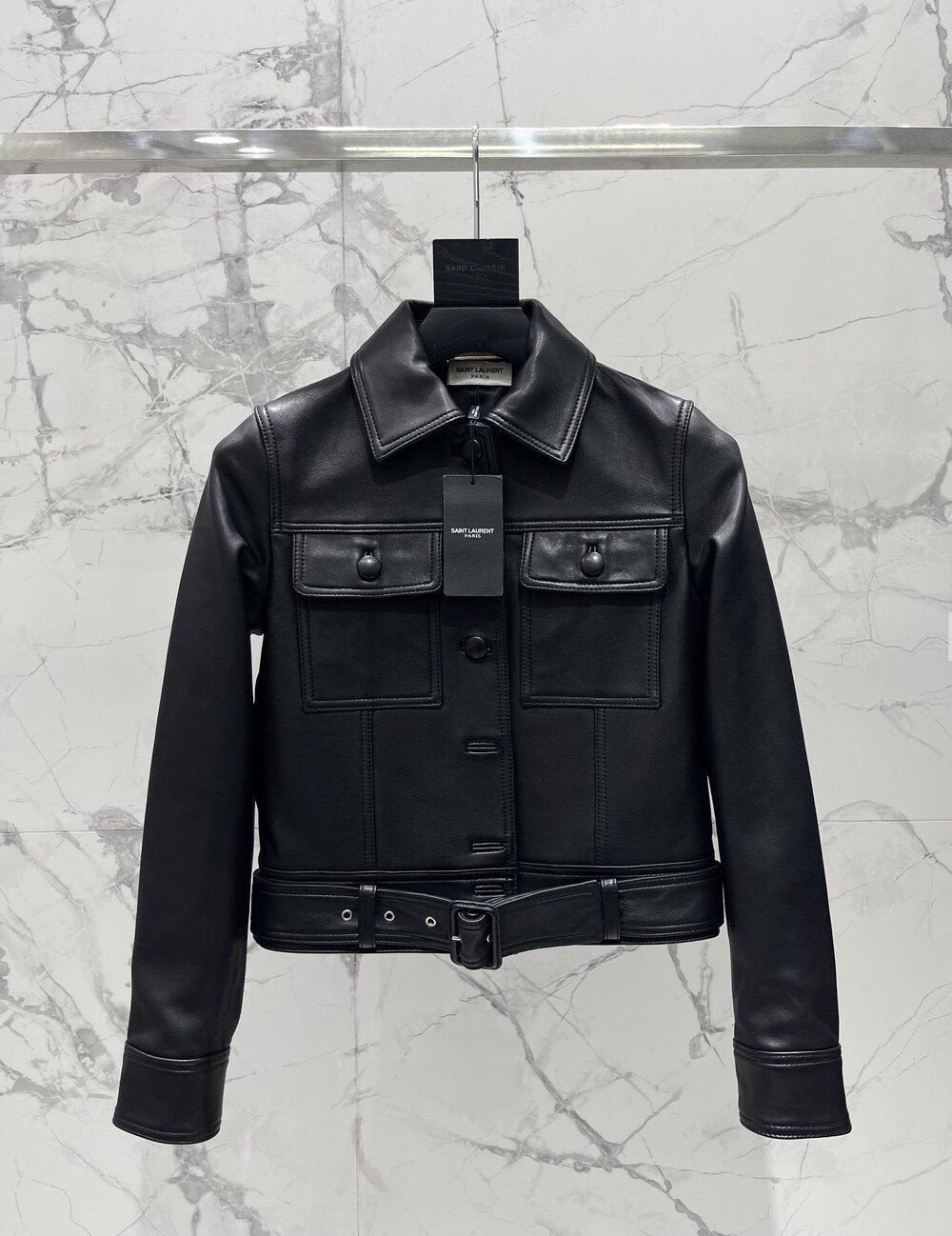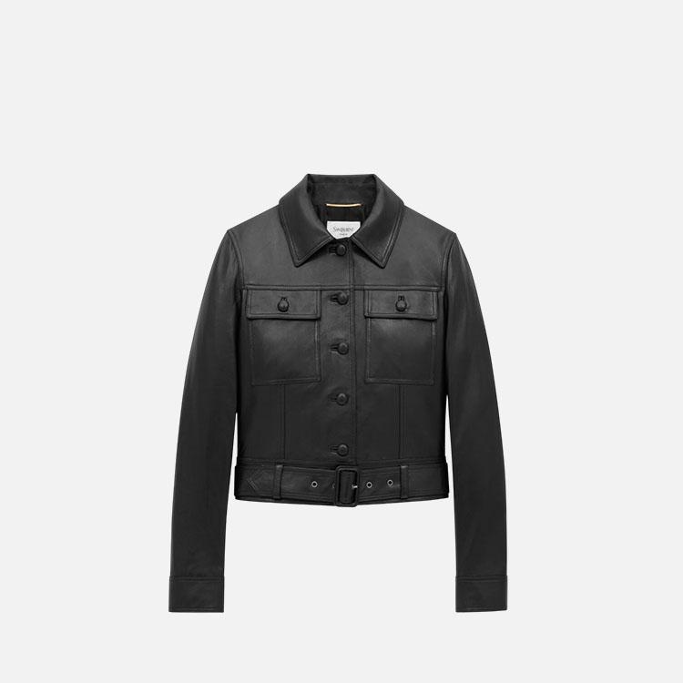 생로랑 램스킨 소재 크롭 재킷 【매장-730만원대】