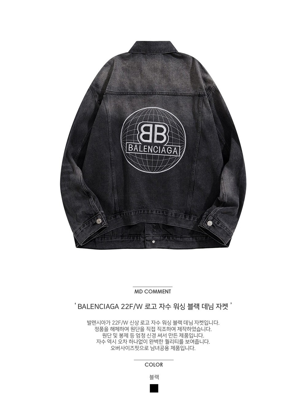 발렌시*가 로고 자수 블랙 워싱 데님자켓