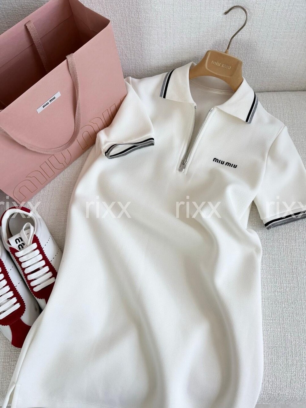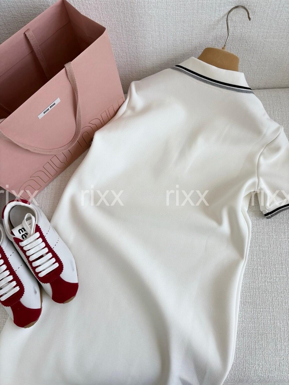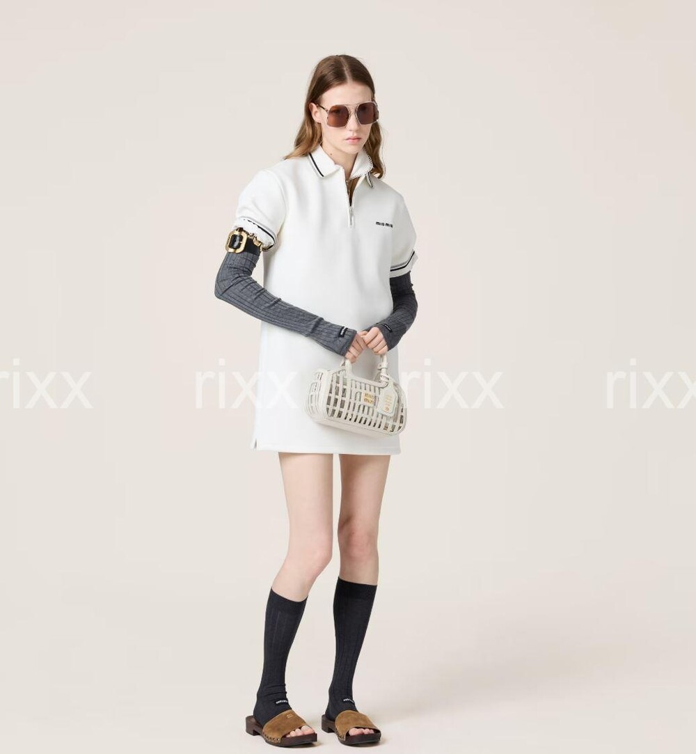 미우미우 본디드 피케 및 테크니컬 저지 드레스 【매장-230만원대】