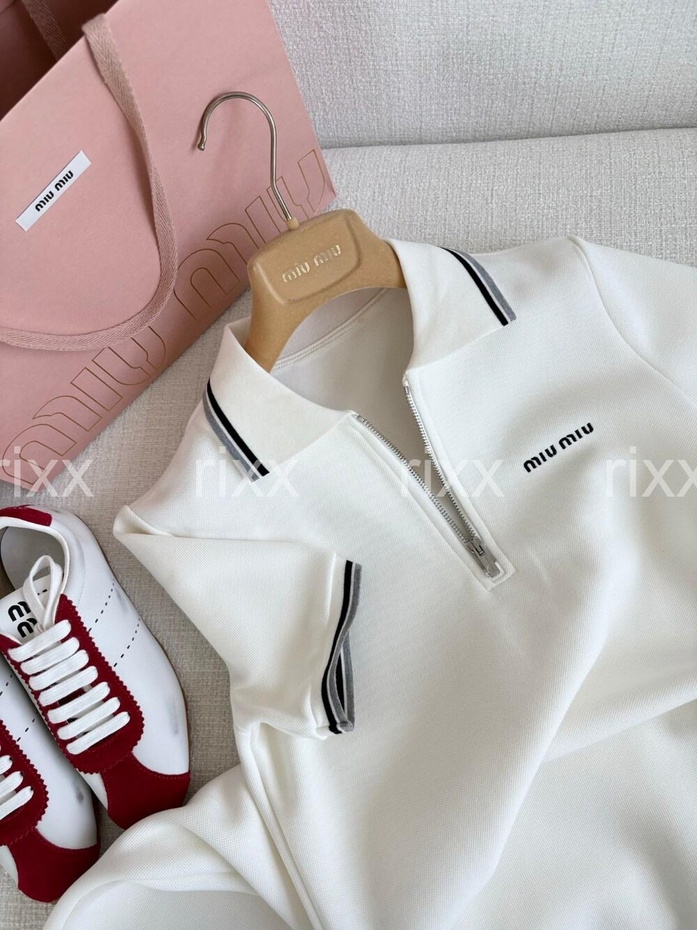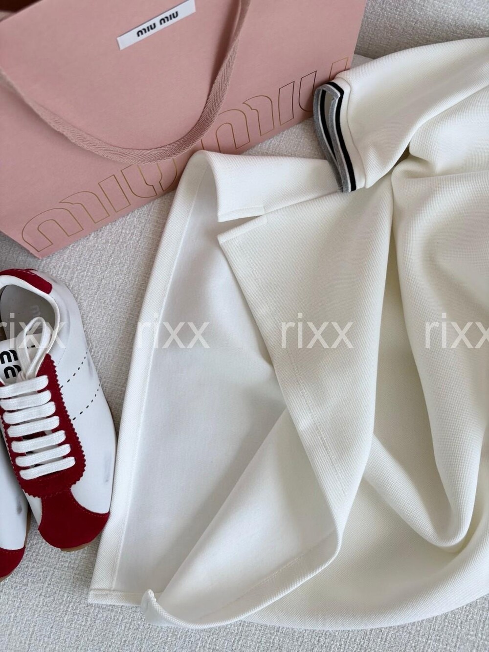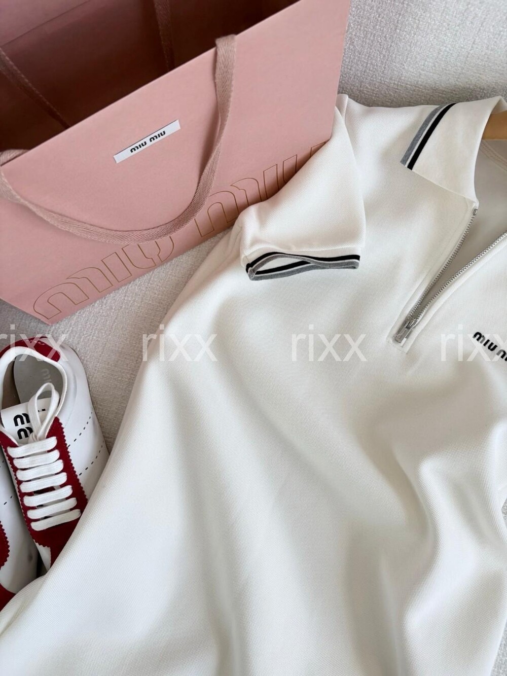 미우미우 본디드 피케 및 테크니컬 저지 드레스 【매장-230만원대】
