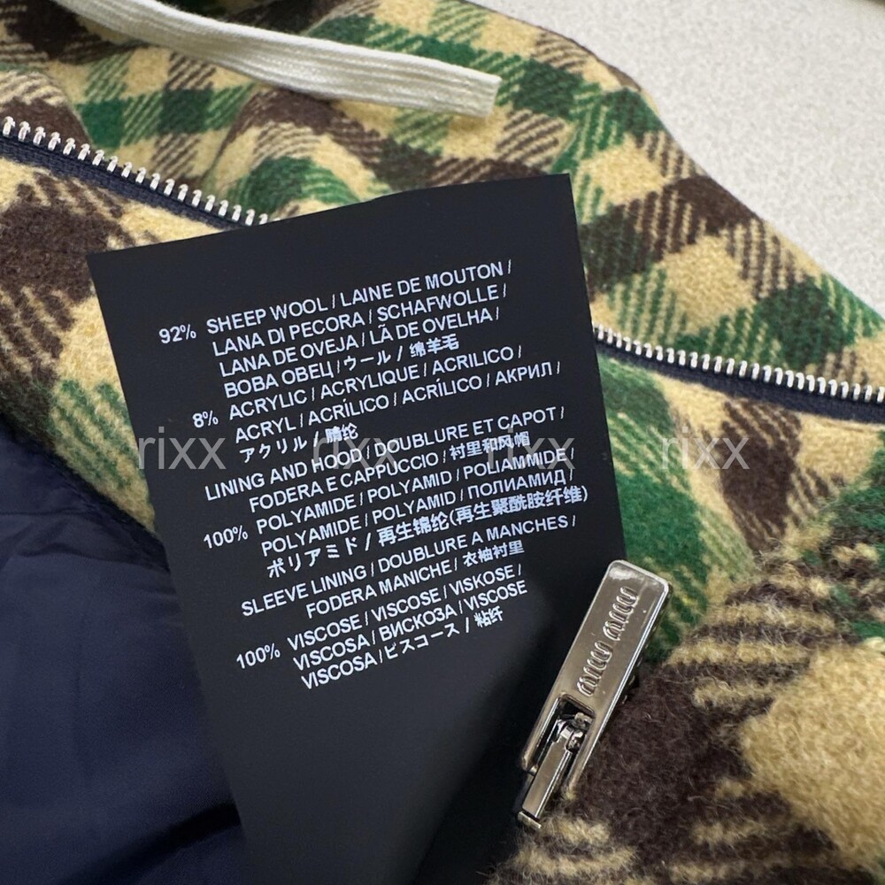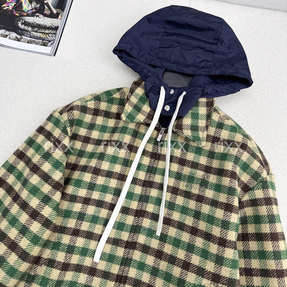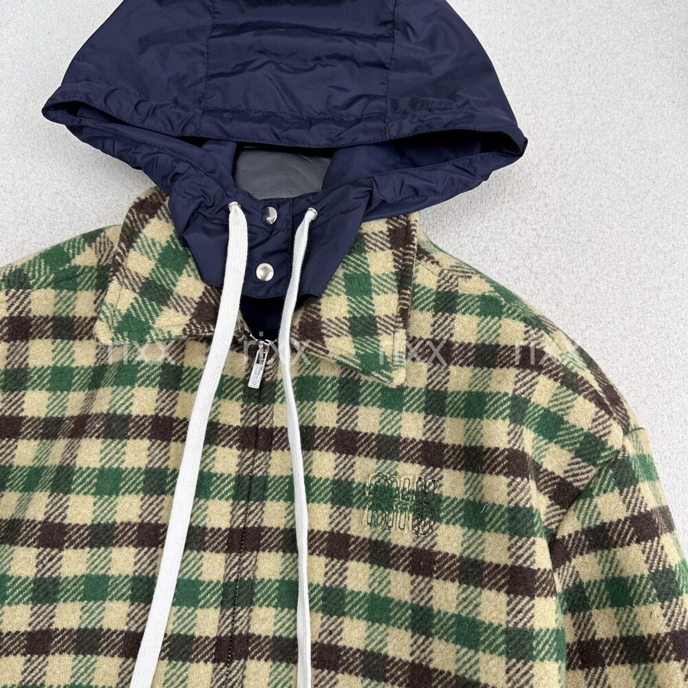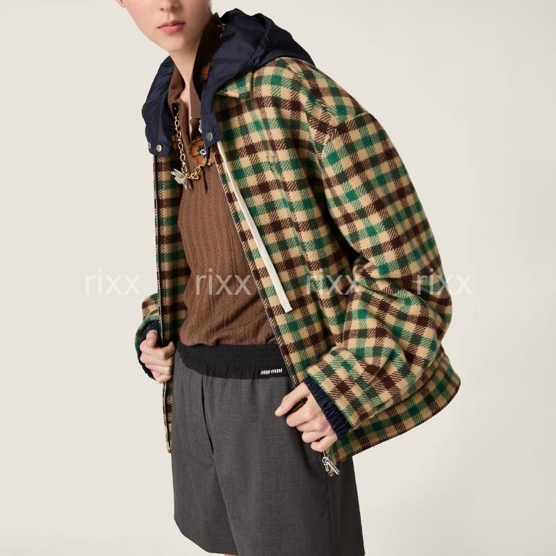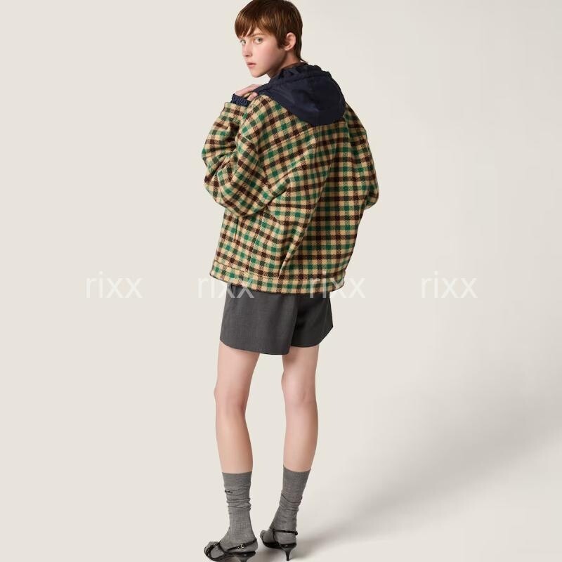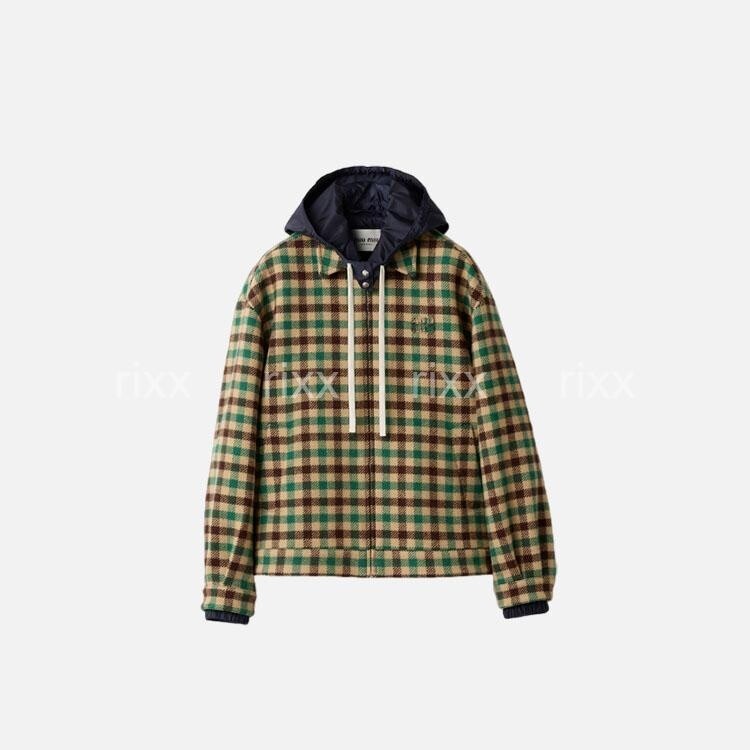 미우미우 깅엄 체크와 테크니컬 패브릭 재킷 【매장-670만원대】