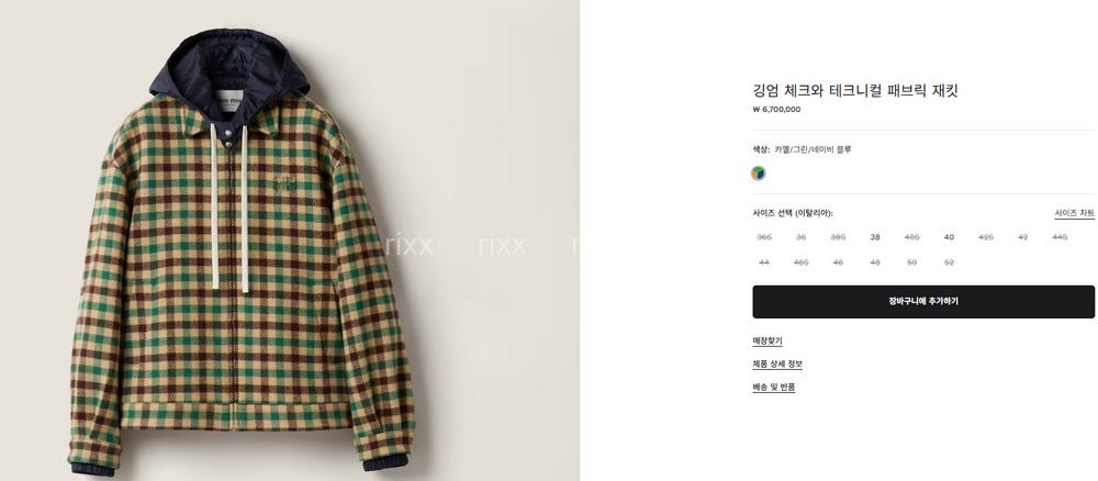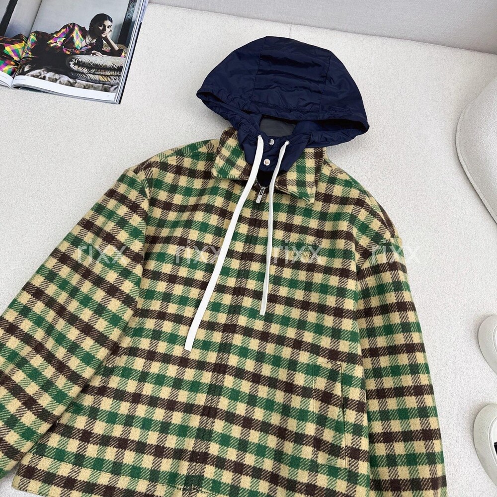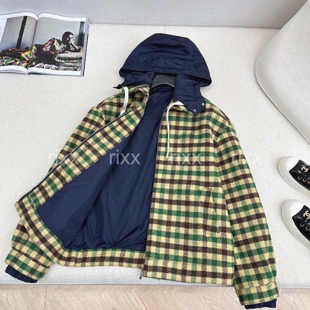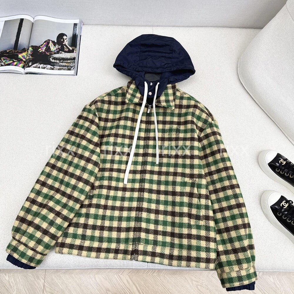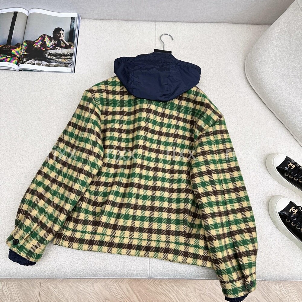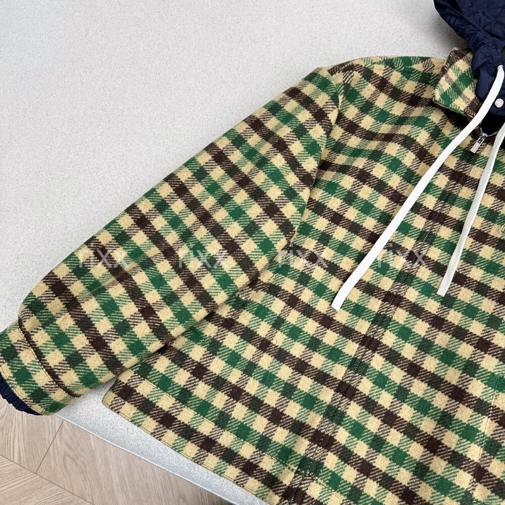 미우미우 깅엄 체크와 테크니컬 패브릭 재킷 【매장-670만원대】