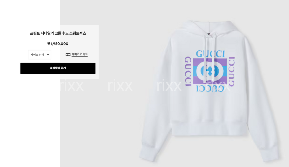 구찌 프린트 디테일의 코튼 후드 스웨트셔츠 【매장-210만원대】