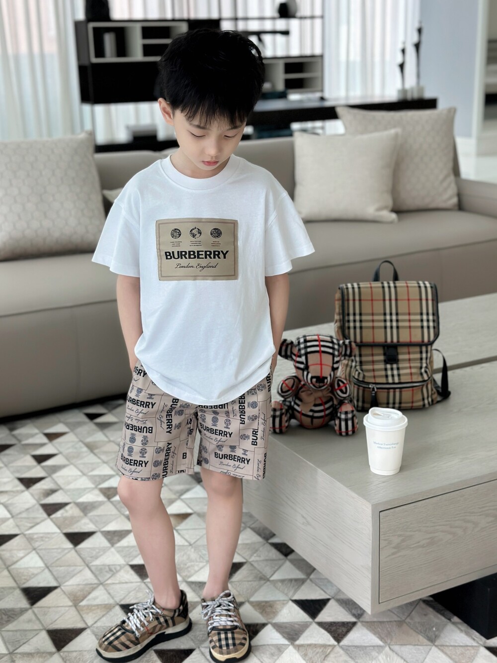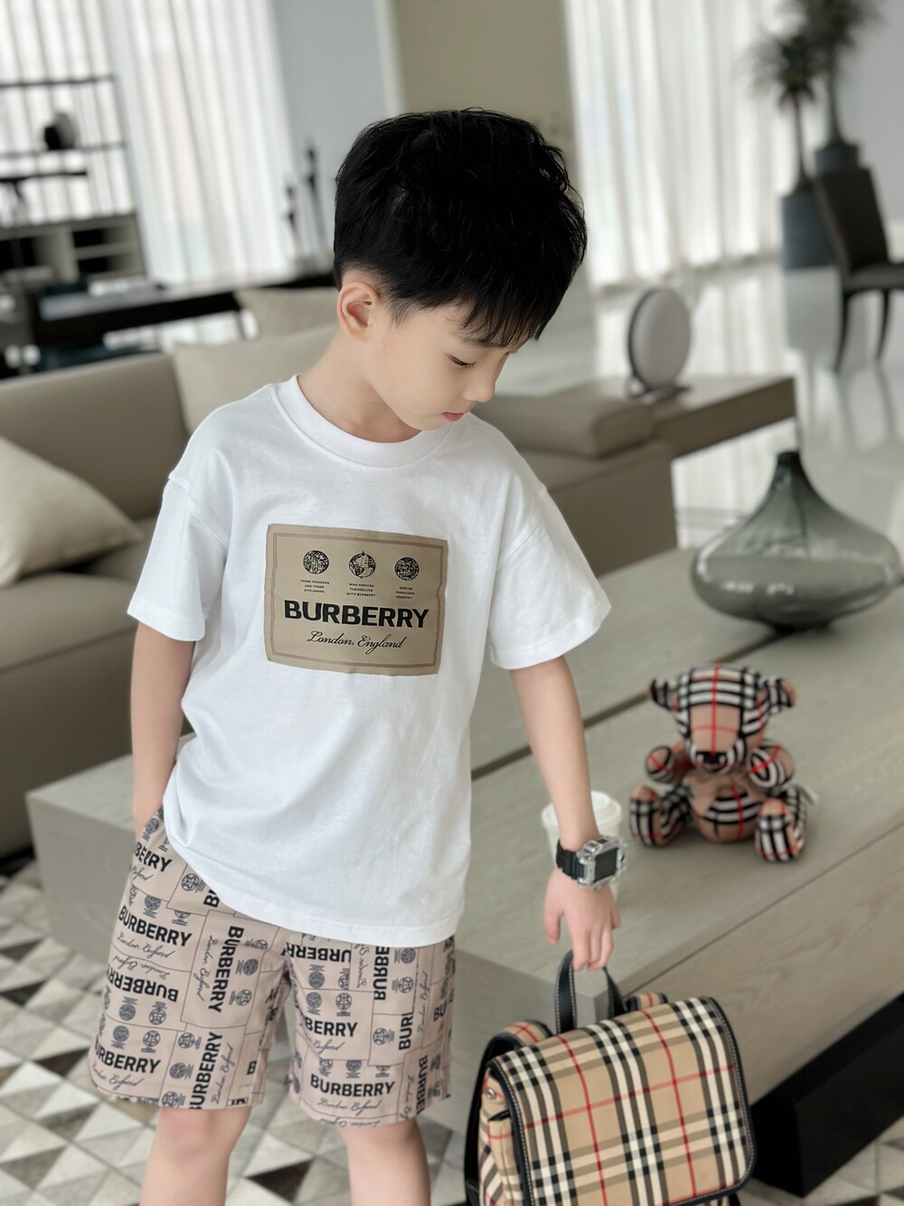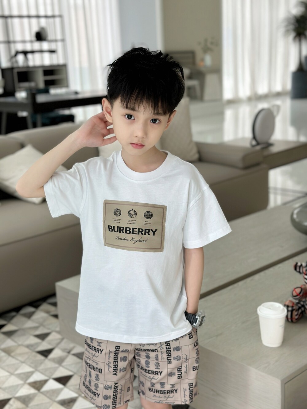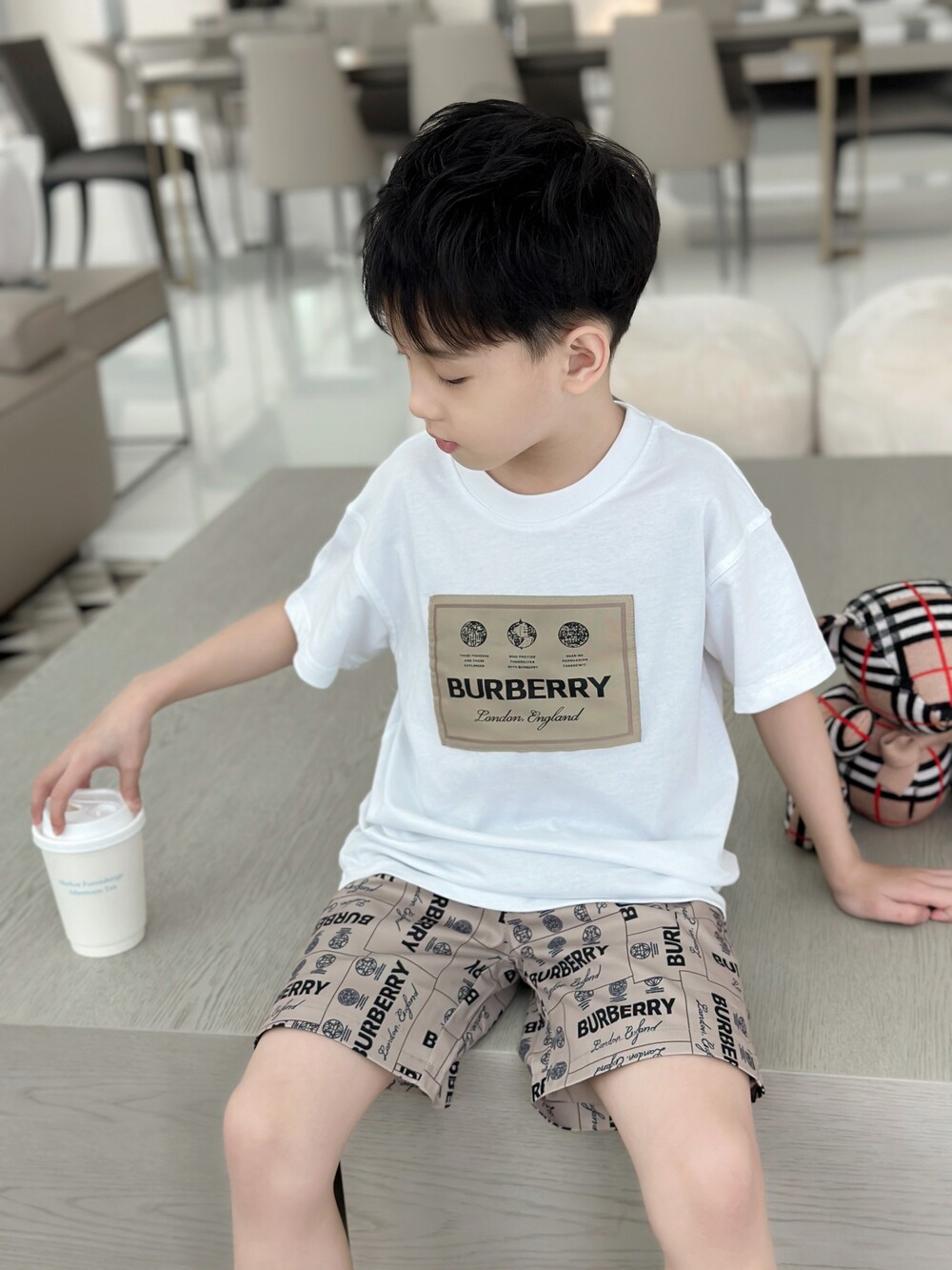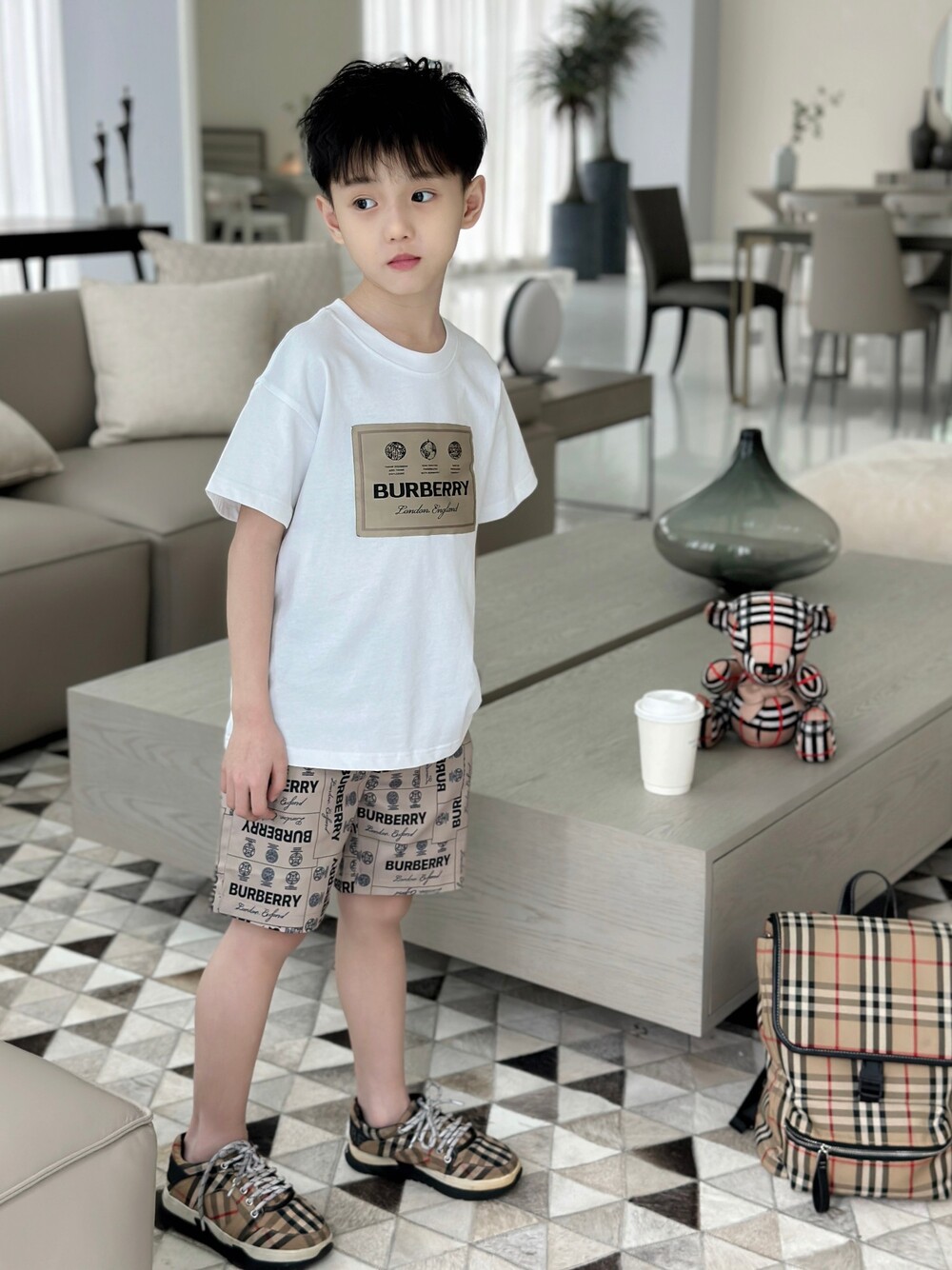 AC 아동복 버버리 레터링 티셔츠 & 반바지 세트