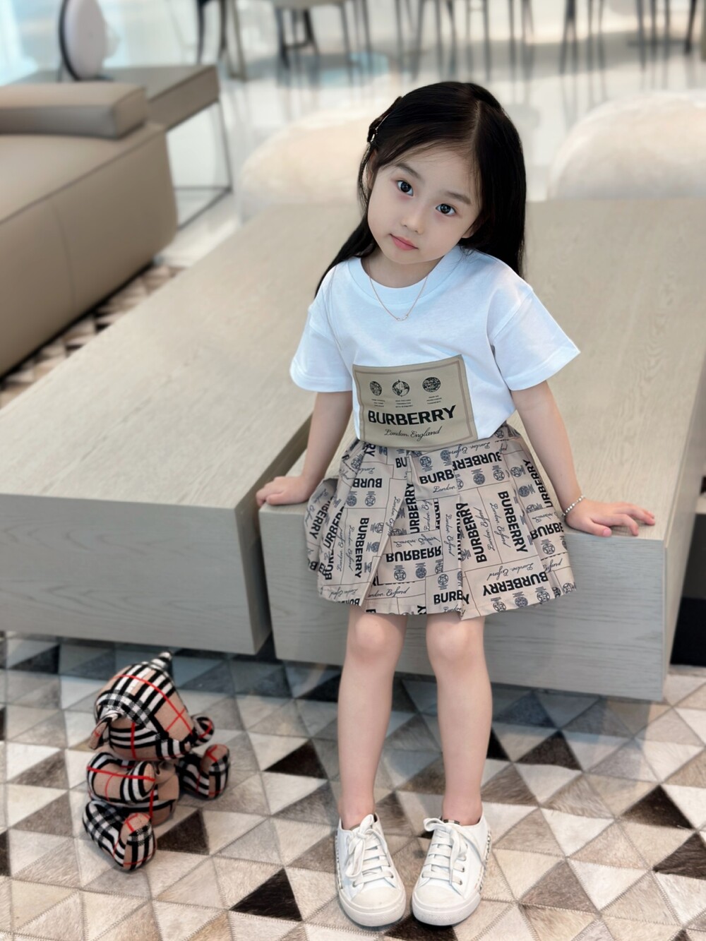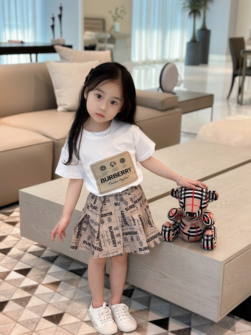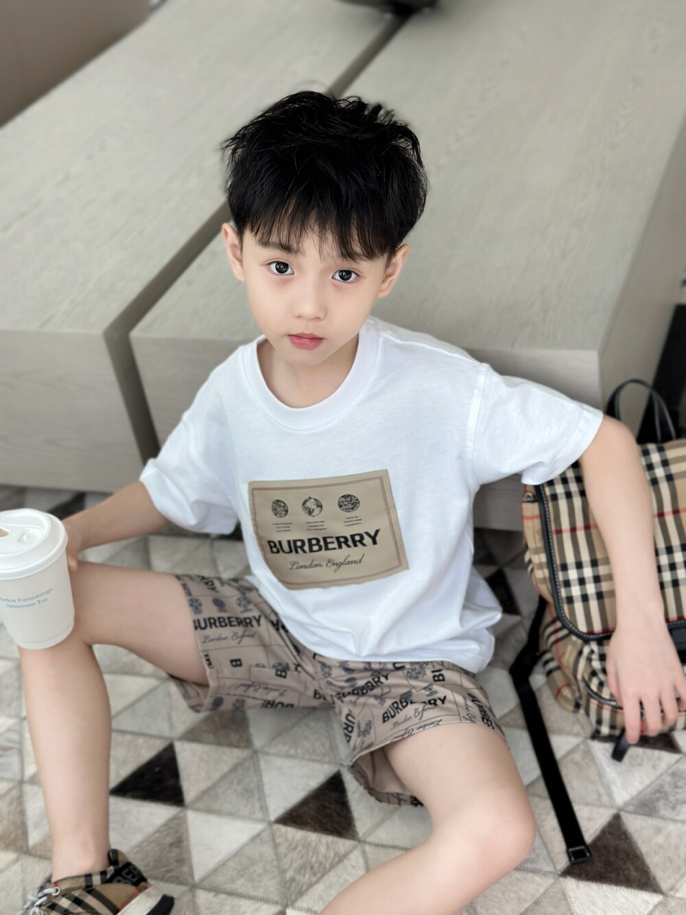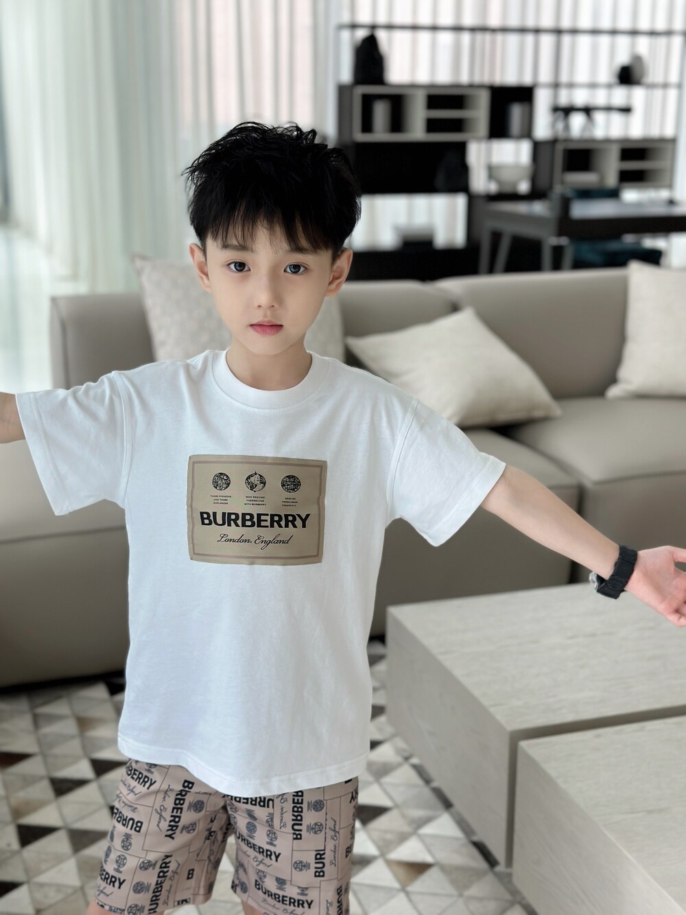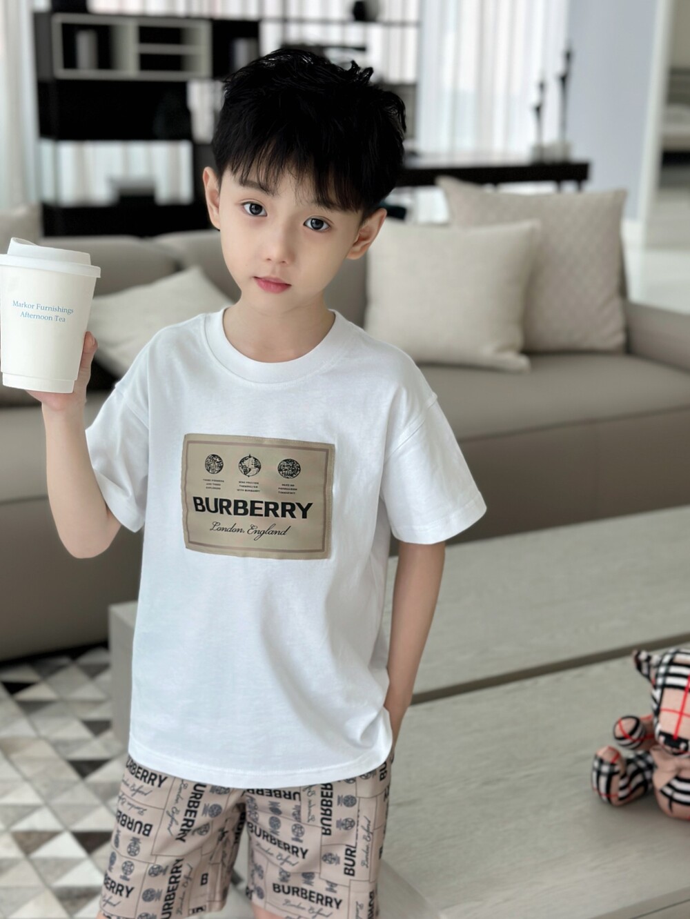 AC 아동복 버버리 레터링 티셔츠 & 반바지 세트