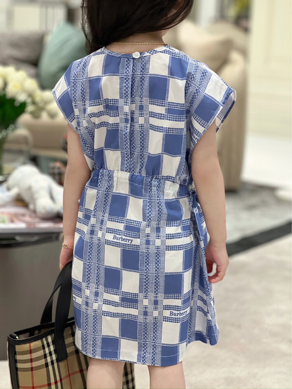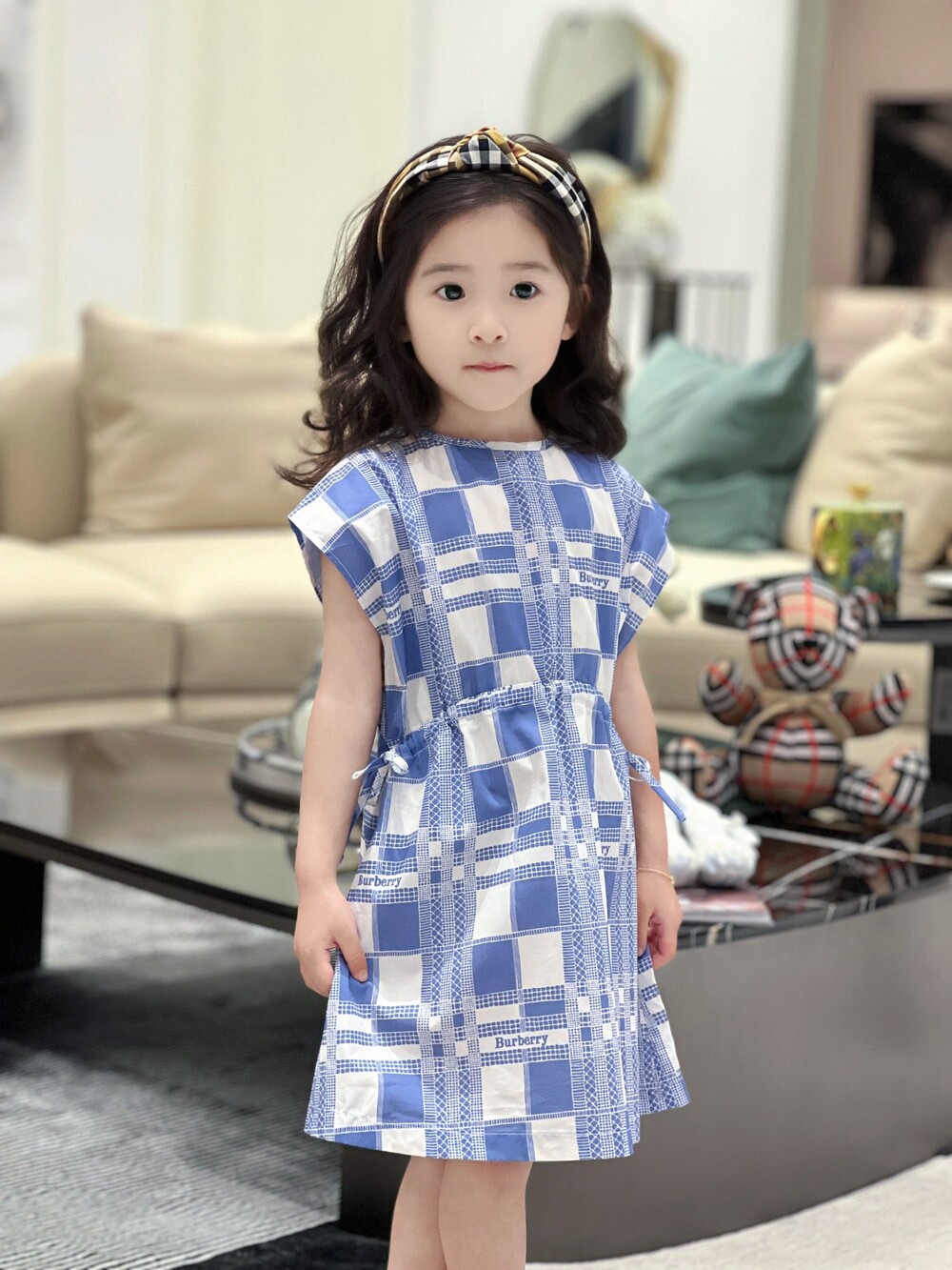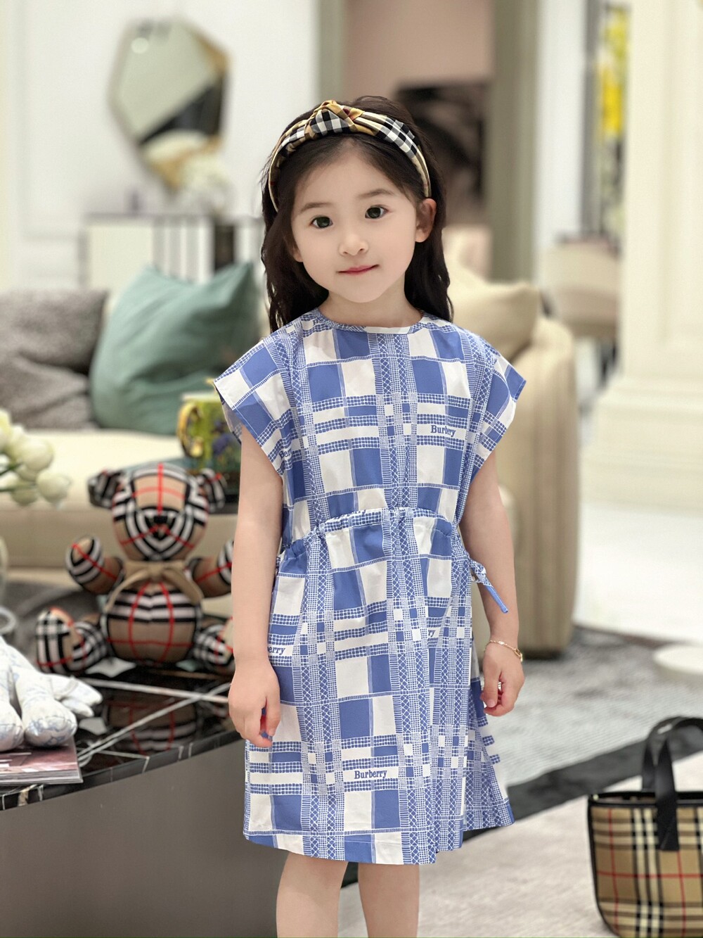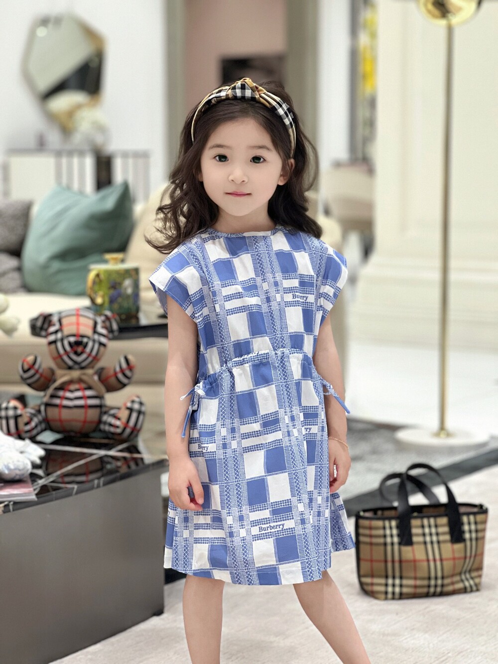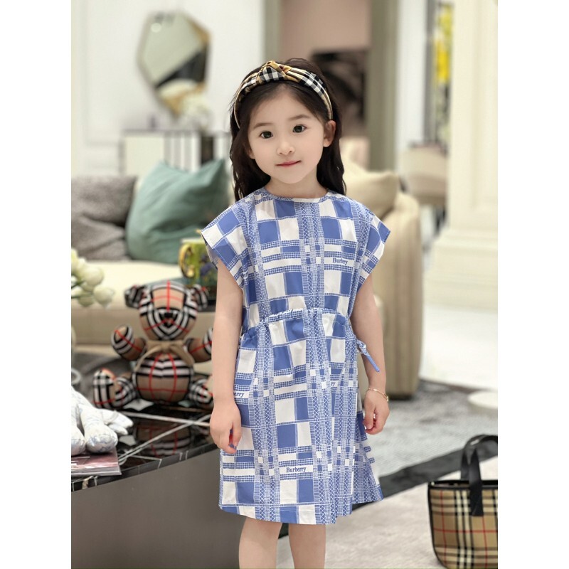 AC 아동복 블루 화이트 체크 원피스