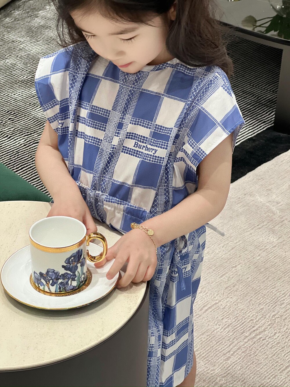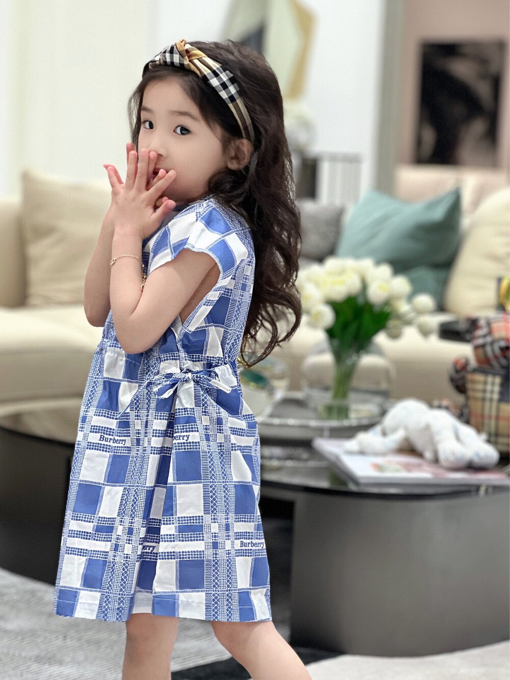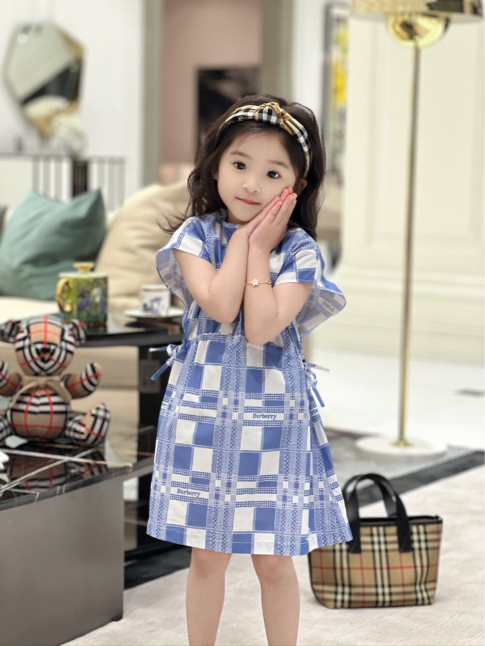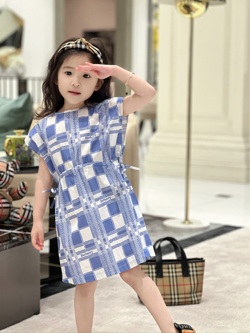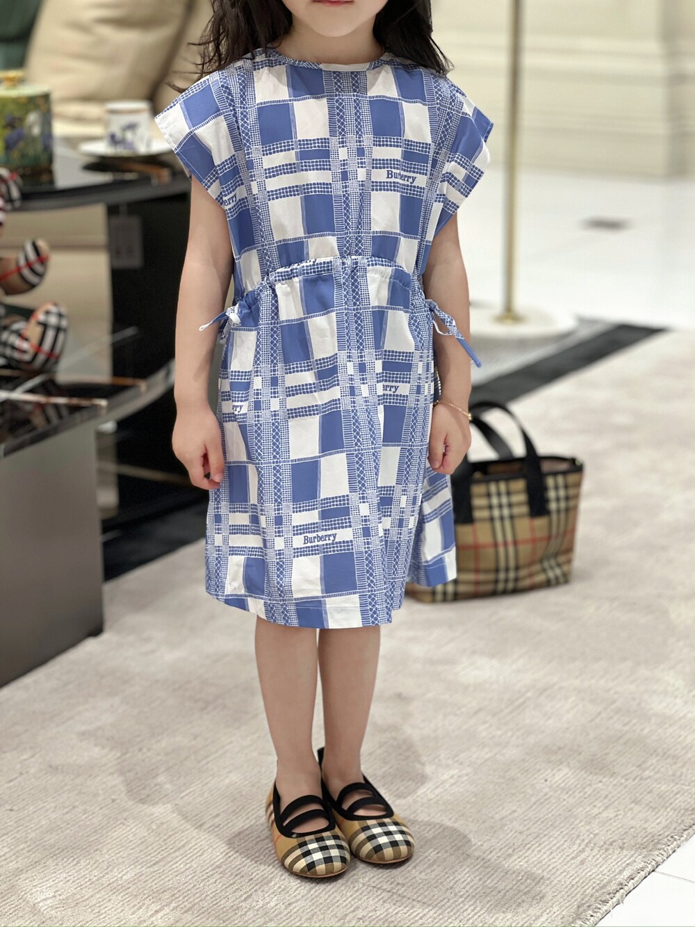AC 아동복 블루 화이트 체크 원피스