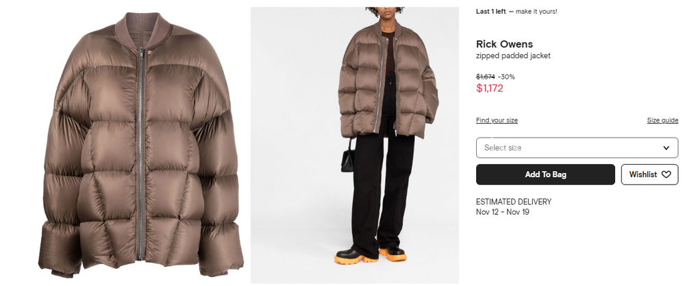 릭오웬스 지퍼 패딩 재킷 【매장-220만원대】