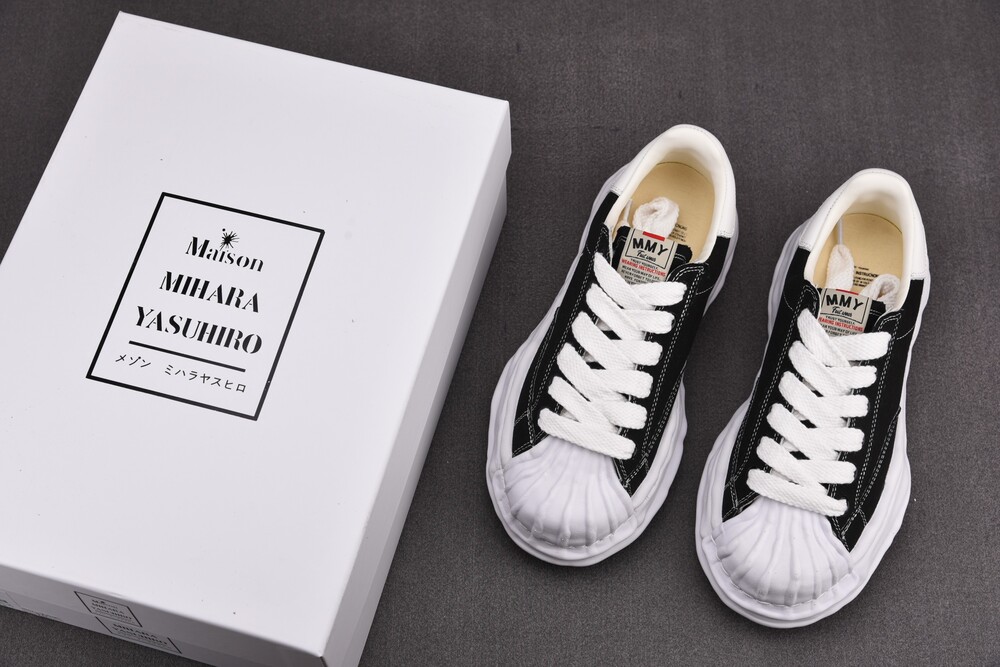 미하라 야스히로 블레이키 OG 솔 캔버스 로우탑 스니커즈 블랙 화이트